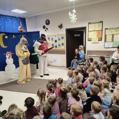 2 grudnia w naszym przedszkolu gościliśmy aktorów Teatru Skrzat z Krakowa, którzy odegrali przedstawienie pt. "List do Świętego Mikołaja". Spektakl opowiadał historię bohaterów pomagających dostarczyć list do Świętego Mikołaja. W radosny sposób uczył dzieci, jak ważną wartością jest przyjaźń oraz współpraca z drugim człowiekiem. Ta magiczna opowieść wprowadziła nas wszystkich w świąteczny nastrój. Przedszkolaki z niecierpliwością czekają na wyjątkowe spotkanie z Mikołajem.