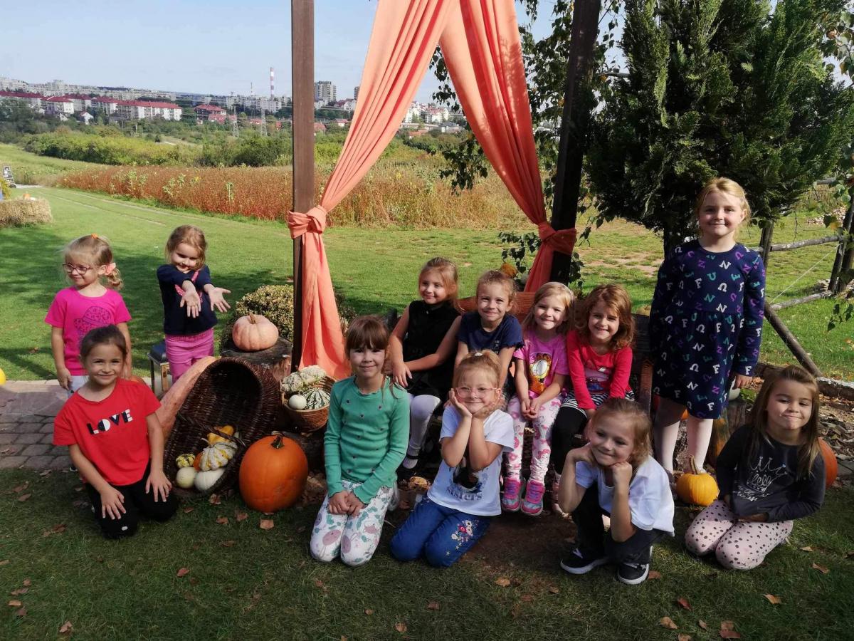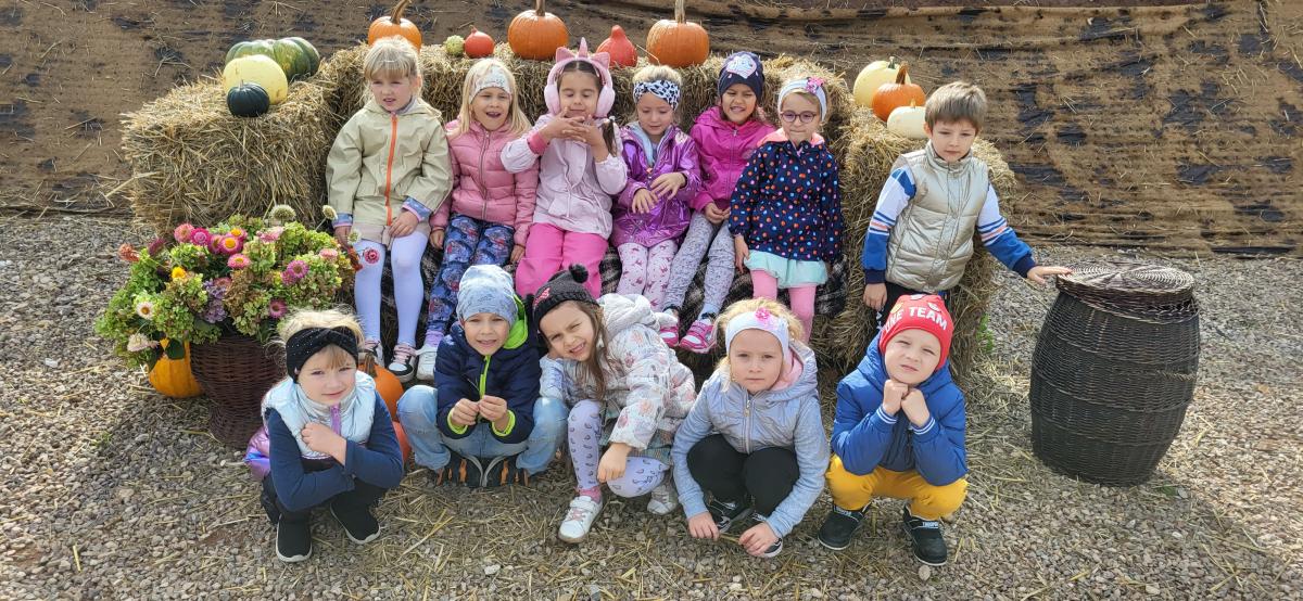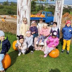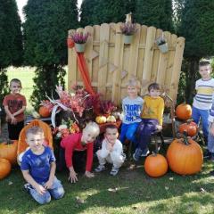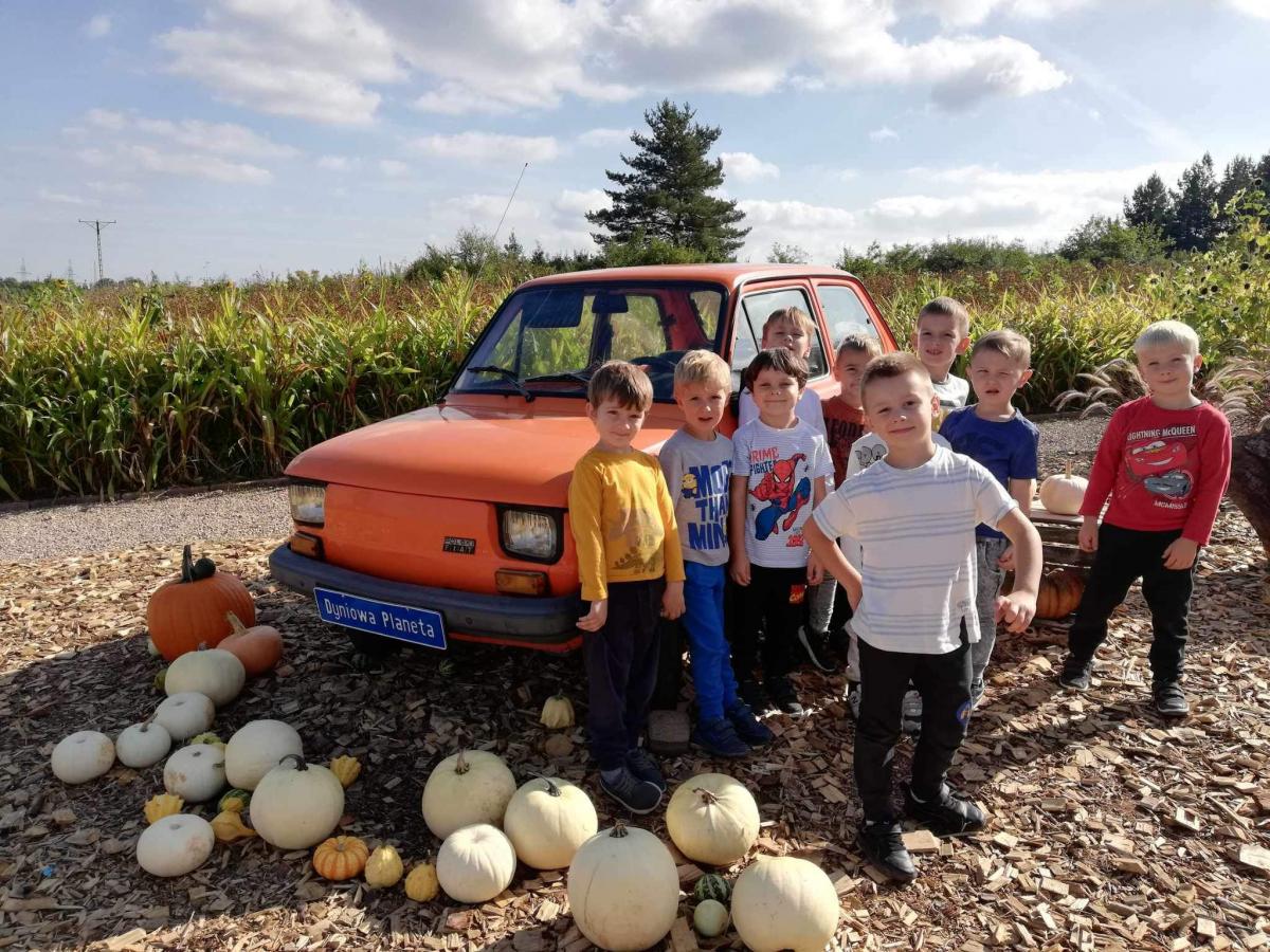 Realizując innowację pedagogiczną "W zdrowym ciele zdrowy duch" w grupie Średniaki 1, zachęcamy dzieci do spożywania zdrowych posiłków, warzyw i owoców. Korzystając z pięknej, jesiennej pogody, postanowiliśmy wybrać się pieszo do gospodarstwa agroturystycznego - "Dyniowa Planeta" na zajęcia edukacyjne. Dzieci miały okazję dowiedzieć się jak rosną dynie, poznać ich rozwój od nasionka aż do powstania owocu. Omawialiśmy również jakie potrawy można przygotować z dyni, a także jak ważne dla organizmu jest spożywanie warzyw. Przy okazji podziwialiśmy piękno przyrody, barwy natury i zmiany zachodzące w przyrodzie. Piękne kolorowe dynie uwieczniliśmy na pamiątkowych zdjęciach.