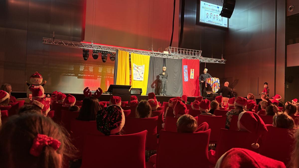 Już od pierwszych chwil uczestników witała piękna świąteczną sceneria. Przedszkolaki obejrzały niezwykle zabawny spektakl przygotowany przez THE BEAR- EDUCATION THEATRE, teatr z czeskiej Pragi. Anglojęzyczne przedstawienie nie tylko bawiło, ale również edukowało i dostarczyło wszystkim wielu radości, emocji oraz niezapomnianych wrażeń.
