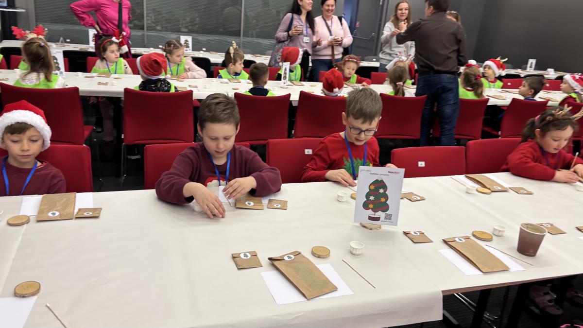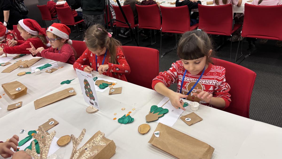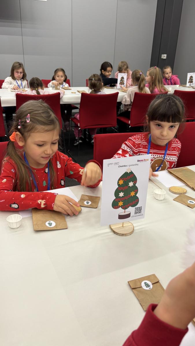 Przedszkolaki wzięły również udział w kreatywnych warsztatach prowadzonych przez animatorów z Osikowej Doliny, podczas których wykonały unikatowe, ekologiczne choinki 🌲.