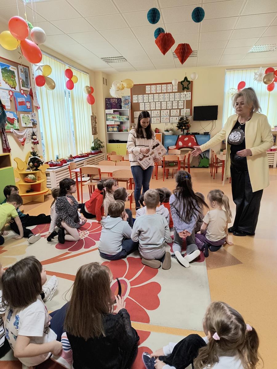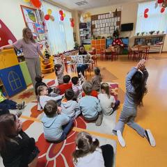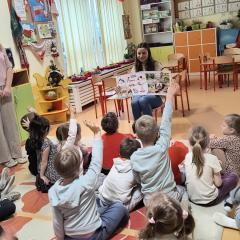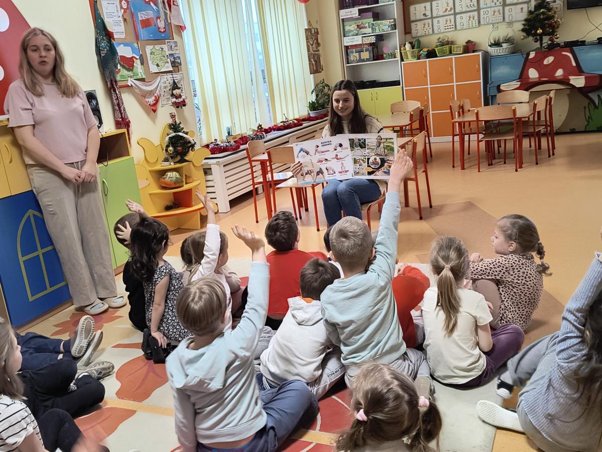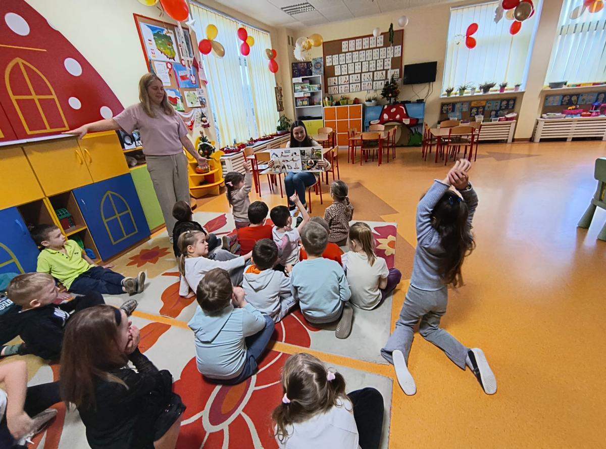 Dnia 06.02.2026 w grupie Starszaki 2 odbyło się spotkanie z Panią Dietetyk. Spotkanie miało na celu uświadomienie dzieciom, jak ważne dla naszego zdrowia jest prawidłowe odżywianie i aktywność fizyczna. Pani dietetyk przedstawiła piramidę zdrowego żywienia, a potem dzieci w grupie mogły samodzielnie zrobić piramidę zdrowego żywienia. Na sam koniec dzieci wspólnie z panią zrobiły plakat ze zdrową i niezdrową żywnością.