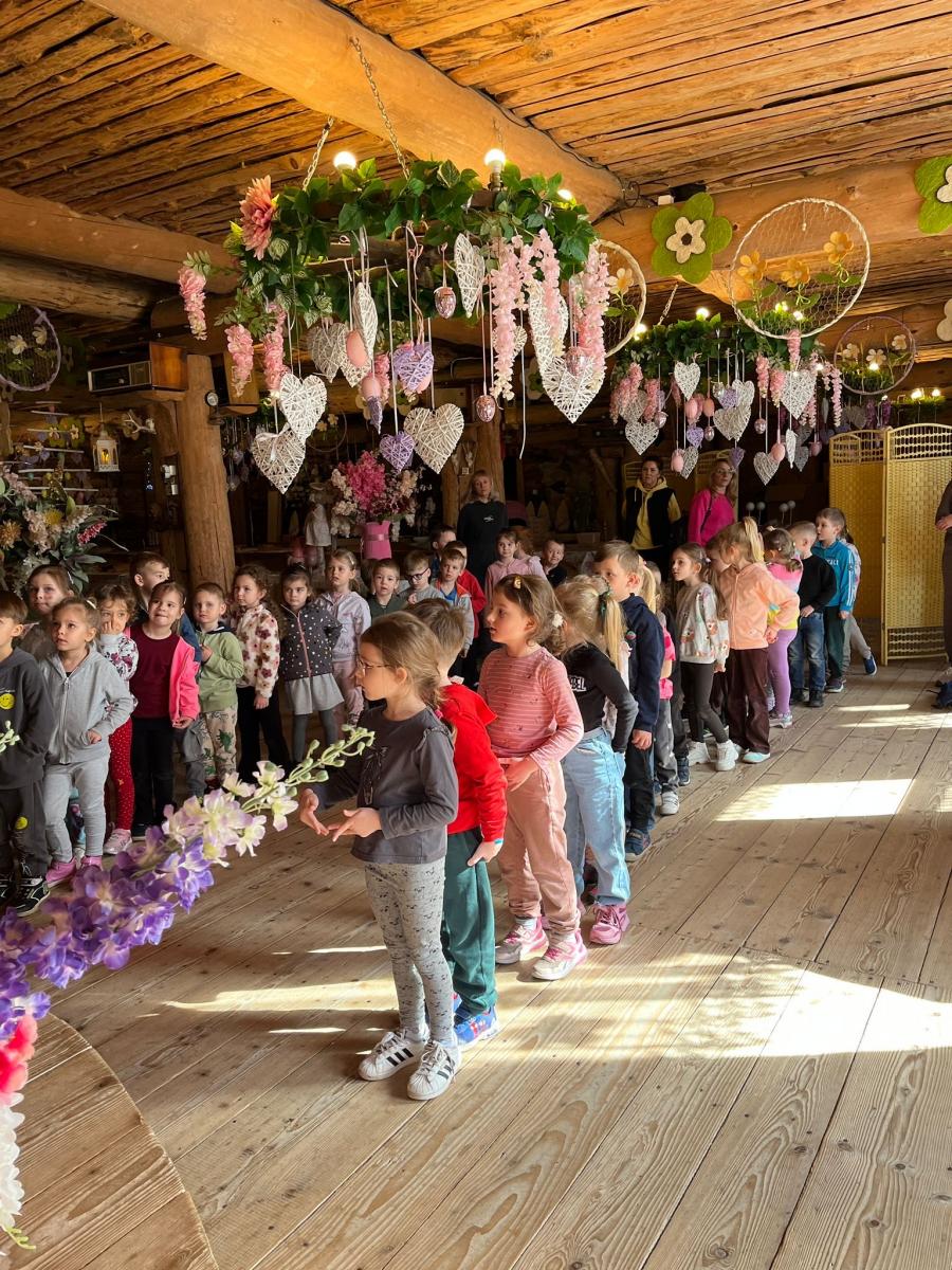 Na początku marca, dzieci z grupy Średniaki 1 i Średniaki 6, z wielką radością wyruszyły na wycieczkę do Wiśniowego Wzgórza. Już od samego rana w przedszkolu panowała wyjątkowa atmosfera – wszyscy byli bardzo podekscytowani, ponieważ czekały na nich warsztaty „Odjazdowa Wielkanoc – tradycje i zwyczaje wielkanocne”.