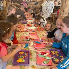 Atrakcjom  towarzyszył  czas tradycyjnego poczęstunku. Na dzieci czekał pyszny barszcz biały z jajkiem, kiełbaską i wiejskim chlebem, a także różne smakołyki: racuszki, pizzerynki oraz nugetsy. Wszystkim bardzo smakowało i nikt nie odszedł od stołu głodny.