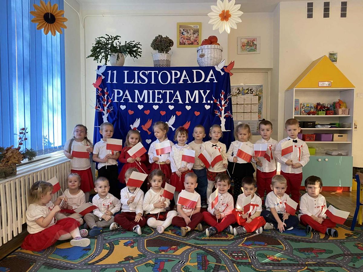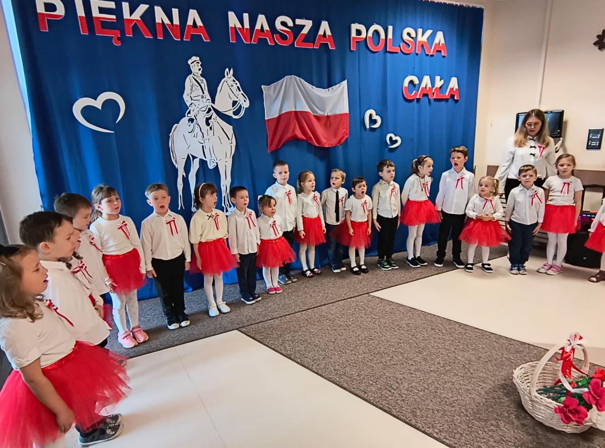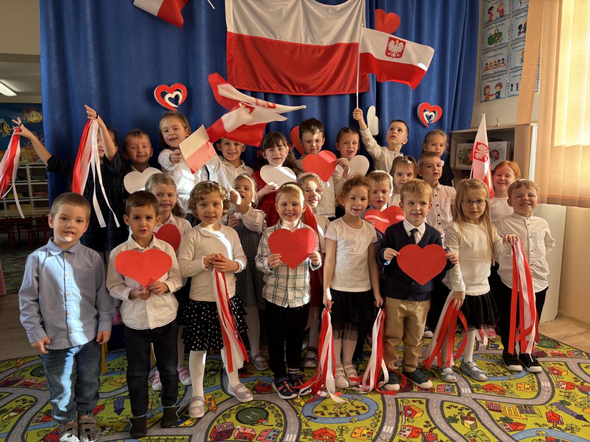 W dniu 7.11.2025 roku dzieci z Przedszkola Samorządowego nr 34 w Kielcach uczestniczyły w uroczystości z okazji obchodów Rocznicy Odzyskania Niepodległości - 11 listopada. Uroczyste odśpiewanie hymnu Polski - Mazurka Dąbrowskiego o godzinie 11.11 poprzedził występ dzieci z grupy Starszaki 2. Przedszkolaki zaprezentowały wiersze, piosenki i pieśni o tematyce patriotycznej, wprowadzającą w piękny świat kultury, tradycji, szacunku i przynależności narodowej.