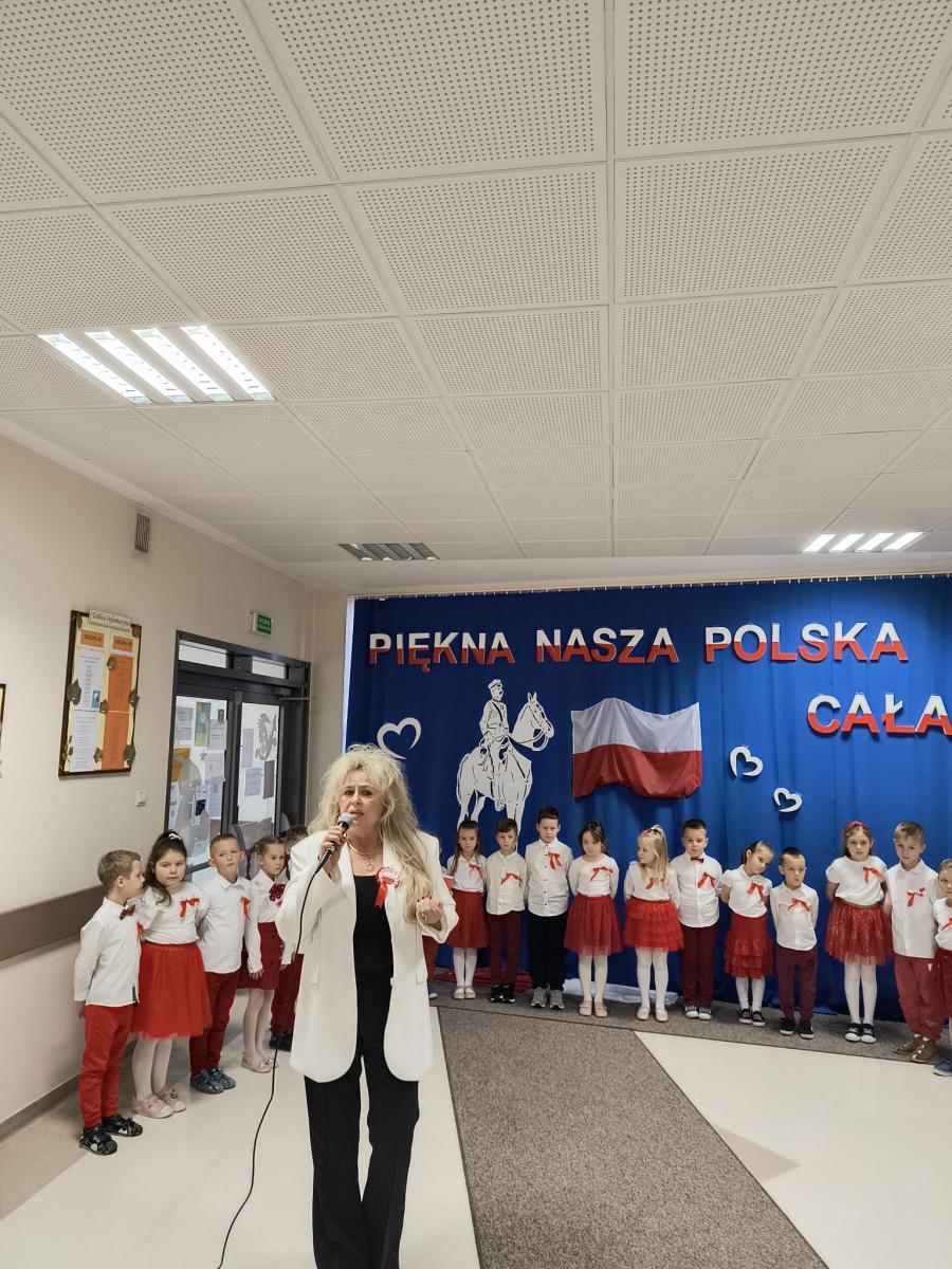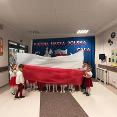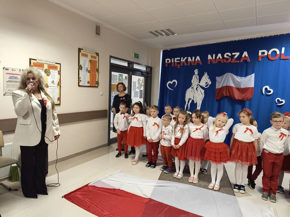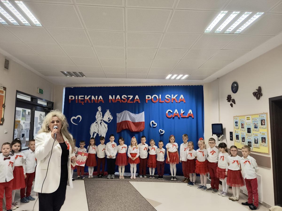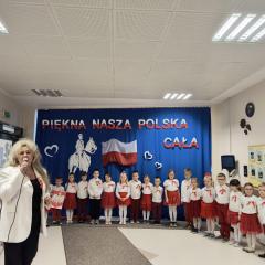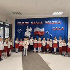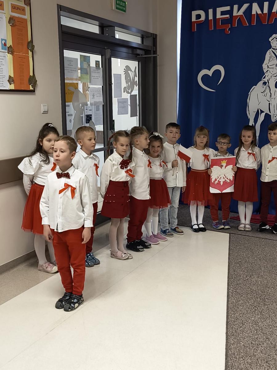 Dnia 12 listopada 2025 roku obchodziliśmy w naszym przedszkolu Święto Niepodległości. Z tej okazji dzieci z gr. Starszaki 1przyszły ubrane na galowo i uroczyście świętowali ten wyjątkowy dla Nas – Polaków dzień. Przedszkolaki wystąpiły przed Rodzicami z programem artystycznym. Podczas występu dzieci recytowały wiersze patriotyczne, śpiewały piosenki oraz zatańczyły taniec z biało – czerwonymi szarfami. Dumnie, przyjmując właściwą postawę „na baczność”, odśpiewano hymn Polski „Mazurek Dąbrowskiego”. Dzień Niepodległości stał się bardzo radosnym dniem w naszym przedszkolu i mamy nadzieję, że zapadnie on w pamięci naszych „Małych Polaków”. Dzięki udziałowi w tego typu uroczystościach, przedszkolaki od najmłodszych lat uczą się patriotyzmu, kształtują pozytywne postawy i uczucia patriotyczne.