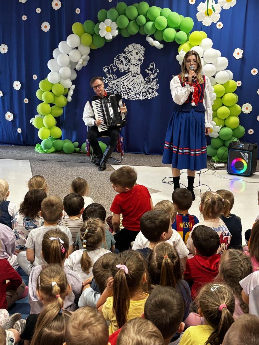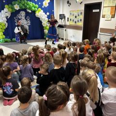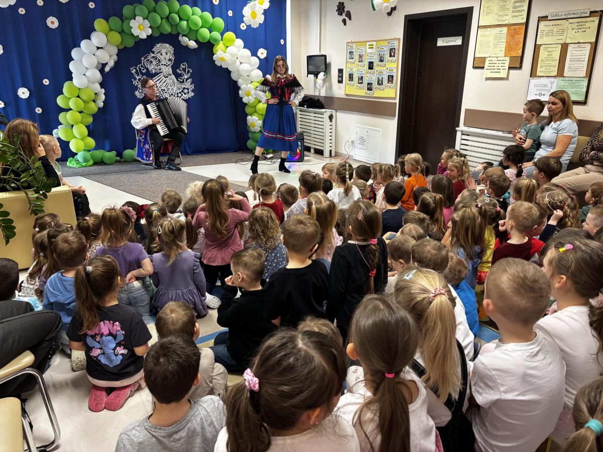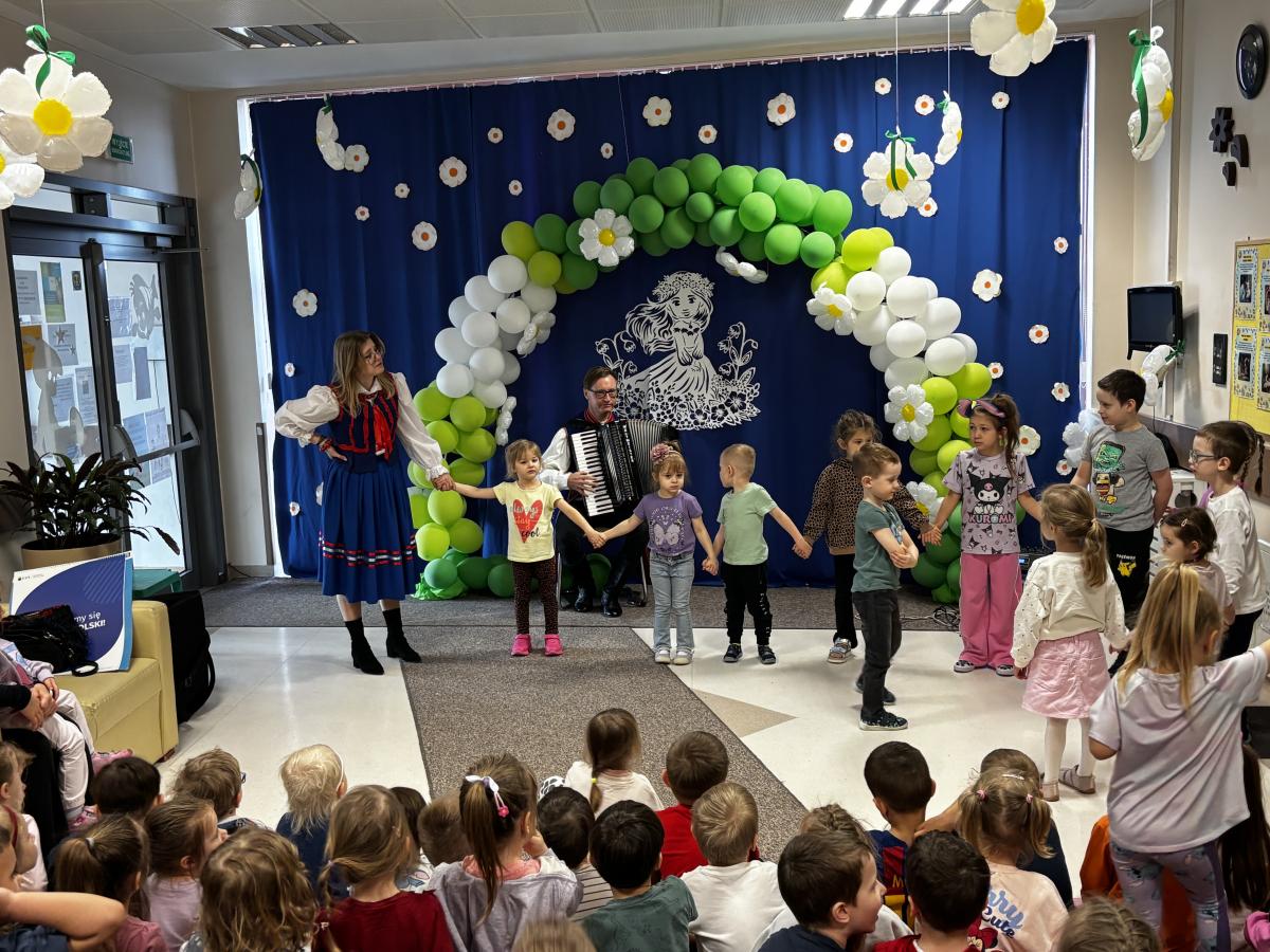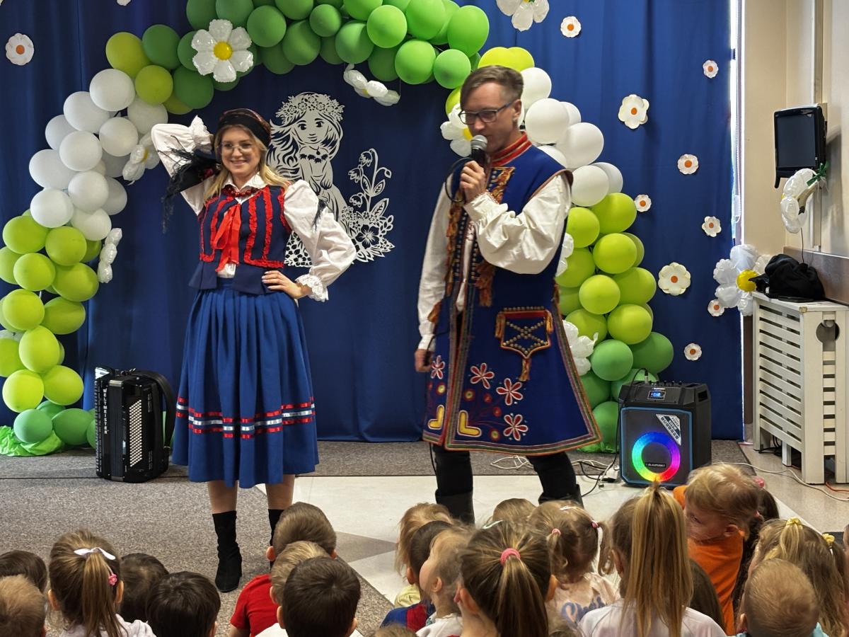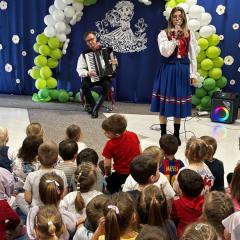 Dziś w przedszkolu odbył się kolejny koncert w wykonaniu muzyków Filharmonii Świętokrzyskiej. Dzieci z zaciekawieniem słuchały opowieści o polskich tańcach narodowych – kujawiaku, oberku, mazurku i krakowiaku. Każdy z nich miał inny rytm i charakter, co bardzo podobało się małym słuchaczom.