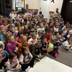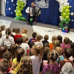 Szczególną uwagę przedszkolaków przyciągnął akordeon. Muzyk zapoznał dzieci z tym instrument, jego wygladem wykonaniem, a przedszkolaki z radością słuchały jego brzmienia.