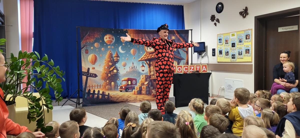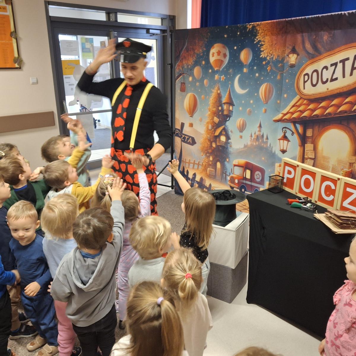 Dnia 17-18 listopada nasze przedszkolaki obejrzały niezwykłe przedstawienie teatralne pt. "Poczta Marzeń" w wykonaniu Agencji Artystycznej Mat- Art.