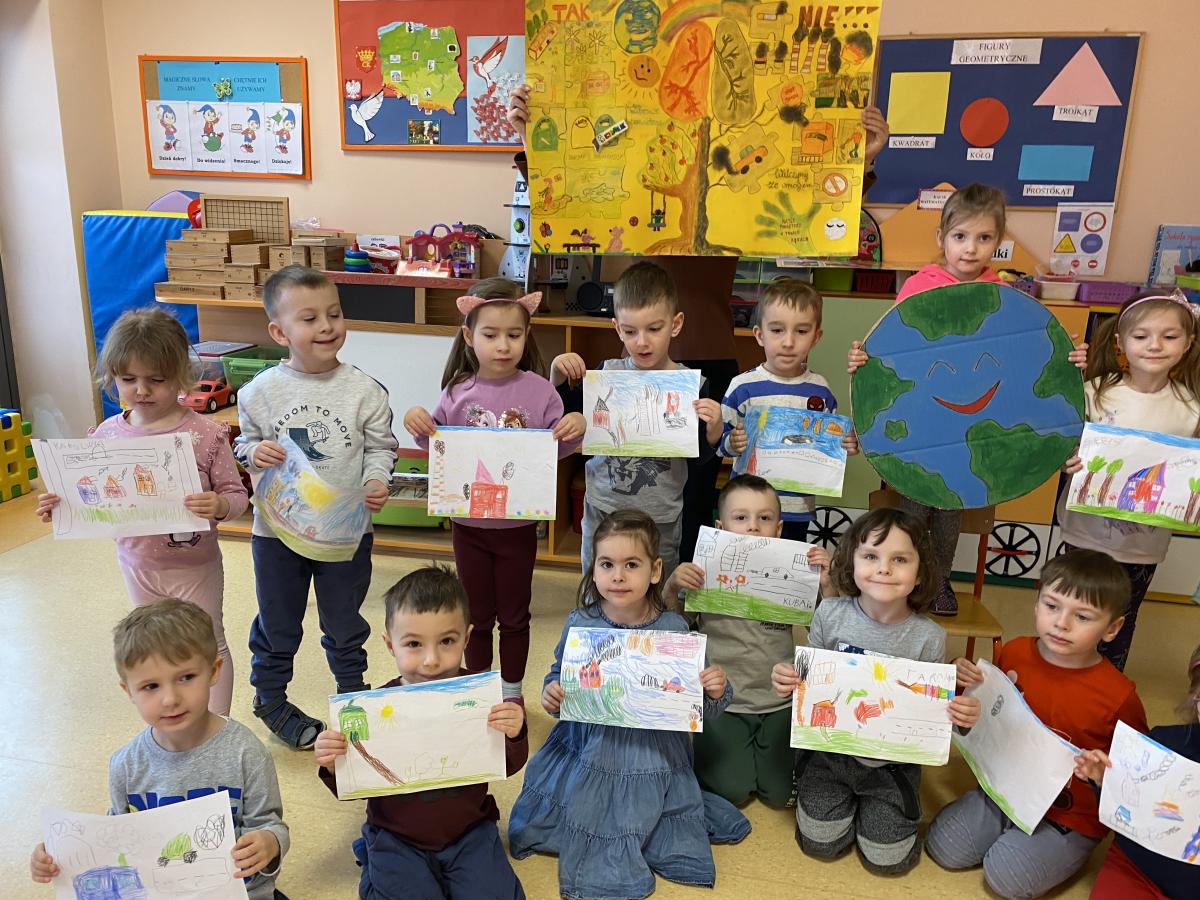 22 kwietnia obchodziliśmy Światowy Dzień Ziemi. Jest to największe i najbardziej popularne święto ekologiczne na świecie, którego celem jest promowanie proekologicznych postaw w społeczeństwie oraz budowanie wspólnej odpowiedzialności za naszą planetę. W tym dniu w naszym przedszkolu odbyły się zajęcia edukacyjne. Przedszkolaki obejrzały film pt. "Kazio i Dzień Ziemi", który uświadomił dzieciom, jak dbać o środowisko i otaczającą nas przyrodę. Dzieci dowiedziały się również, że Ziemia jest jedyną zamieszkałą planetą i jednocześnie naszym domem - dlatego musimy o nią dbać np. poprzez segregację śmieci, a także ich recykling. Przedszkolaki uczestniczyły w quzie podsumowującym realizację programu "Czyste powietrze wokół nas". Próbowały ocenić, co czuje Ziemia, gdy o nią dbamy, a także jakie emocje odczuwa, gdy jest niszczona. Podsumowaniem wszystkich ekologicznych działań prowadzonych w tym dniu, w naszym przedszkolu był "Eko-