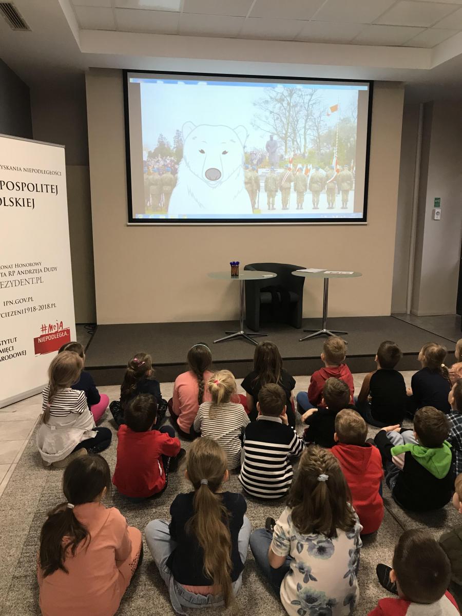 Dnia 21. 04. 2022 r. nasze przedszkolaki z grup Starszaki 1 i Starszaki 2 uczestniczyły w warsztatach pt. ,,Co by było, gdyby zwierzęta mówiły: Baśka Murmańska” zorganizowane w Centrum Edukacyjnym IPN „Przystanek Historia” w Kielcach. Dzieci zapoznały się z dziejami Baśki Murmańskiej, niedźwiedzicy polarnej z Batalionu Wojska Polskiego, która jest motywem przewodnim warsztatów poświęconych odzyskaniu niepodległości przez Polskę. Podczas spotkania przedszkolaki dowiedziały się, w przystępny sposób, o okresie zaborów Polski, I wojnie światowej, odzyskaniu przez Polskę niepodległości i roli, którą w tej sprawie odegrał Józef Piłsudski.
