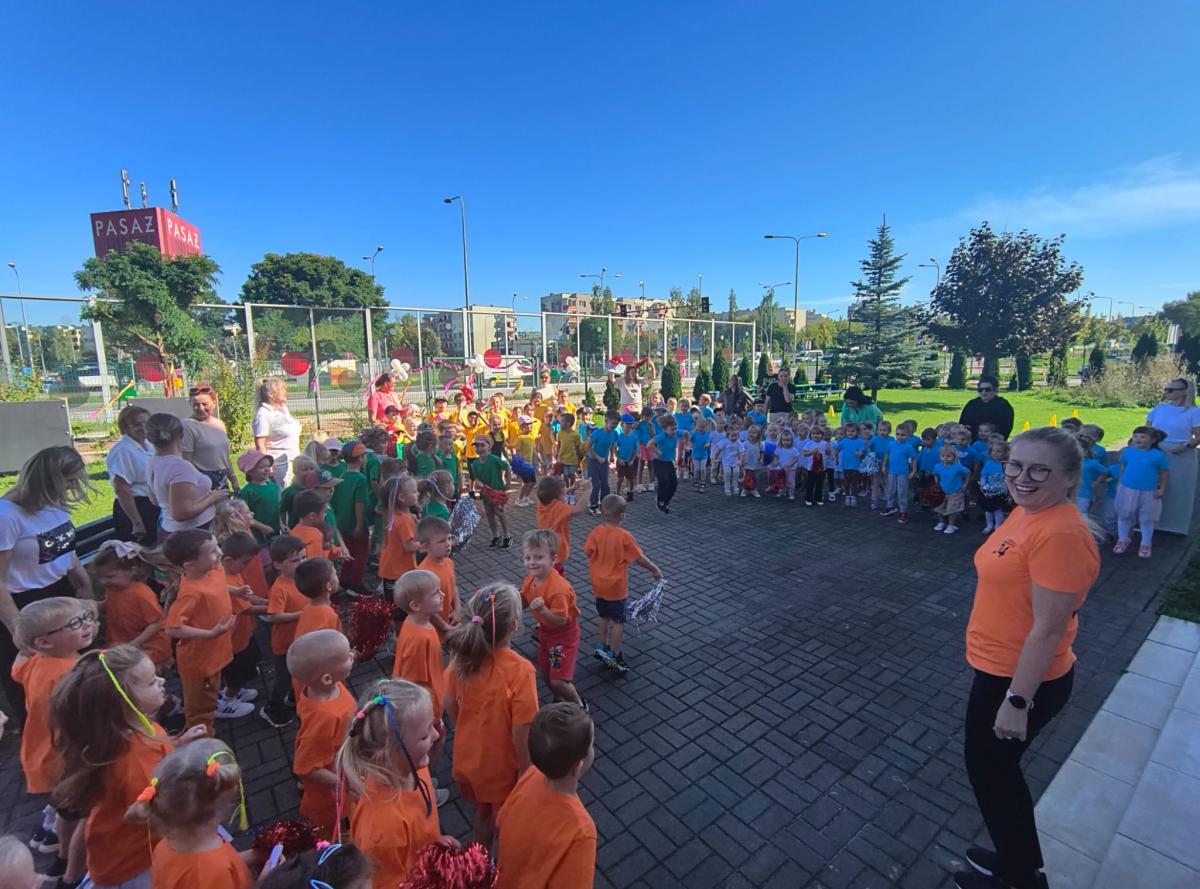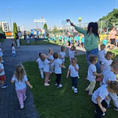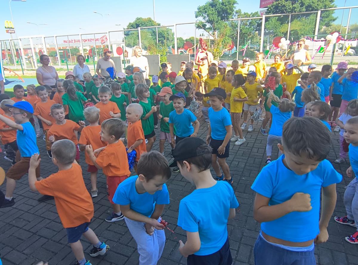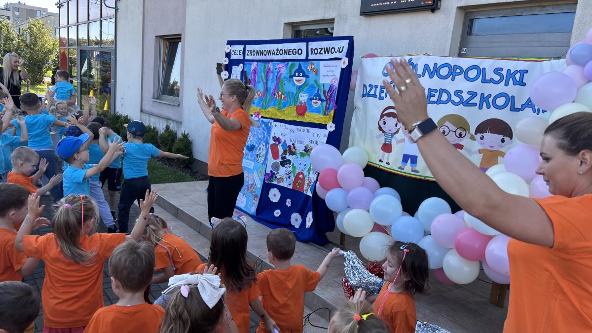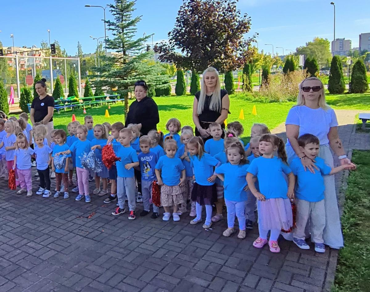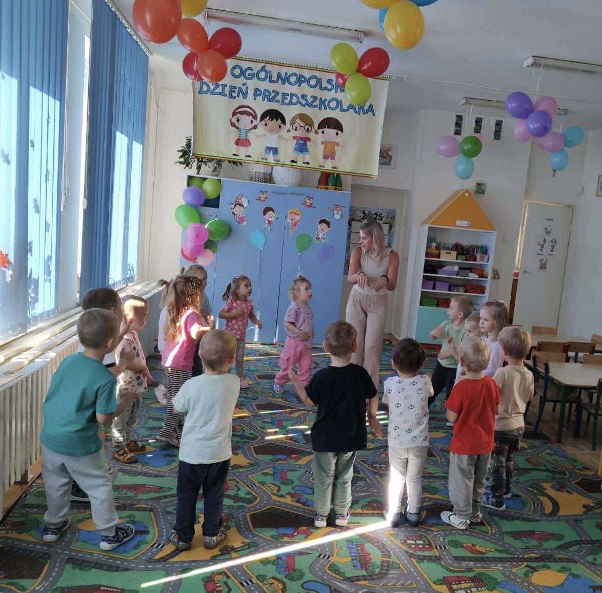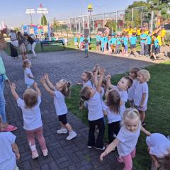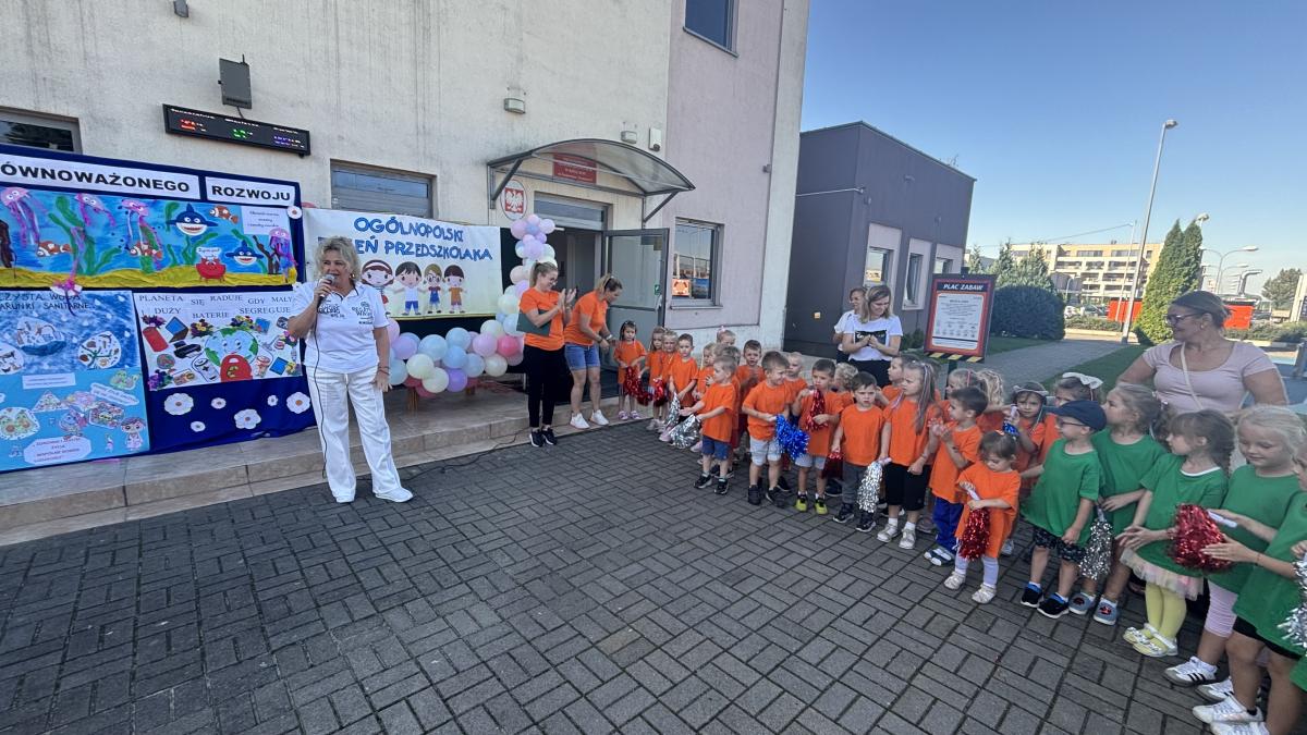 W dniu 20 września w naszym przedszkolu z radością obchodziliśmy Ogólnopolski Dzień Przedszkolaka. Był to wyjątkowy dzień pełen uśmiechów, zabawy i niezapomnianych wrażeń. Obchody rozpoczęliśmy od powitania wszystkich Przedszkolaków przez Panią Dyrektor Halinę Bętkowską. Następnie wszystkie grupy odśpiewały hymn przedszkolaka i piosenkę "Przedszkole drugi dom". Uroczystość była doskonałą okazją do realizacji zadań z ogólnopolskiego projektu "Edukacja dla zrównoważonego rozwoju. Kompetencje społeczne i ekologiczne przedszkolaków" OMEP dotyczącego celów zrównoważonego rozwoju. Dzieci rozwiązywały quiz wiedzy na temat dbania o środowisko naturalne, jak również to w którym żyjemy. Nie zabrakło również aktywności fizycznej na powietrzu w postaci gier i zabaw ruchowych z wykorzystaniem sprzętu sportowego, gumy sensorycznej, czy chusty animacyjnej. Każda grupa wzięła udział w specjalnie przygotowanych konkurencjach, które dostarczyły mnóstwa radości i pozytywnych emocji. Dzień Przedszkolaka był doskonałą okazją do wspólnego świętowania, rozwijania relacji oraz budowania poczucia przynależności do przedszkolnej społeczności. Wszystkim dzieciom życzymy, aby każdy dzień w przedszkolu był tak radosny, jak ten wyjątkowy wrześniowy dzień!
