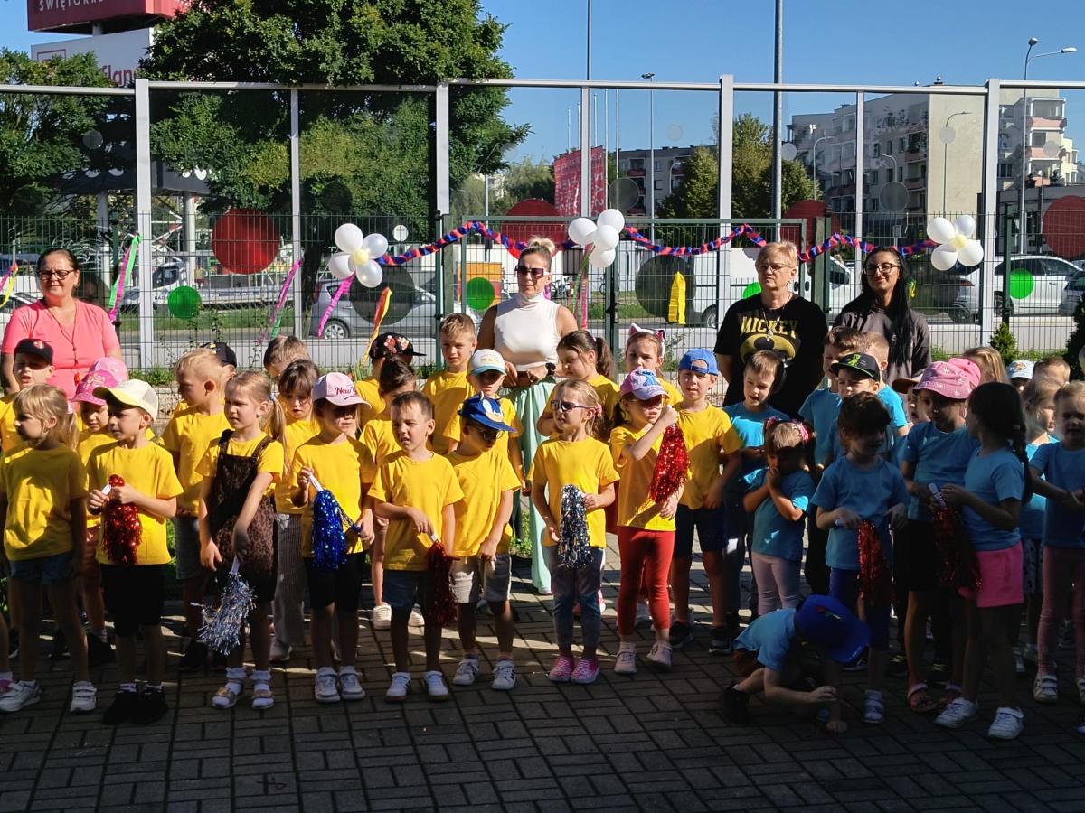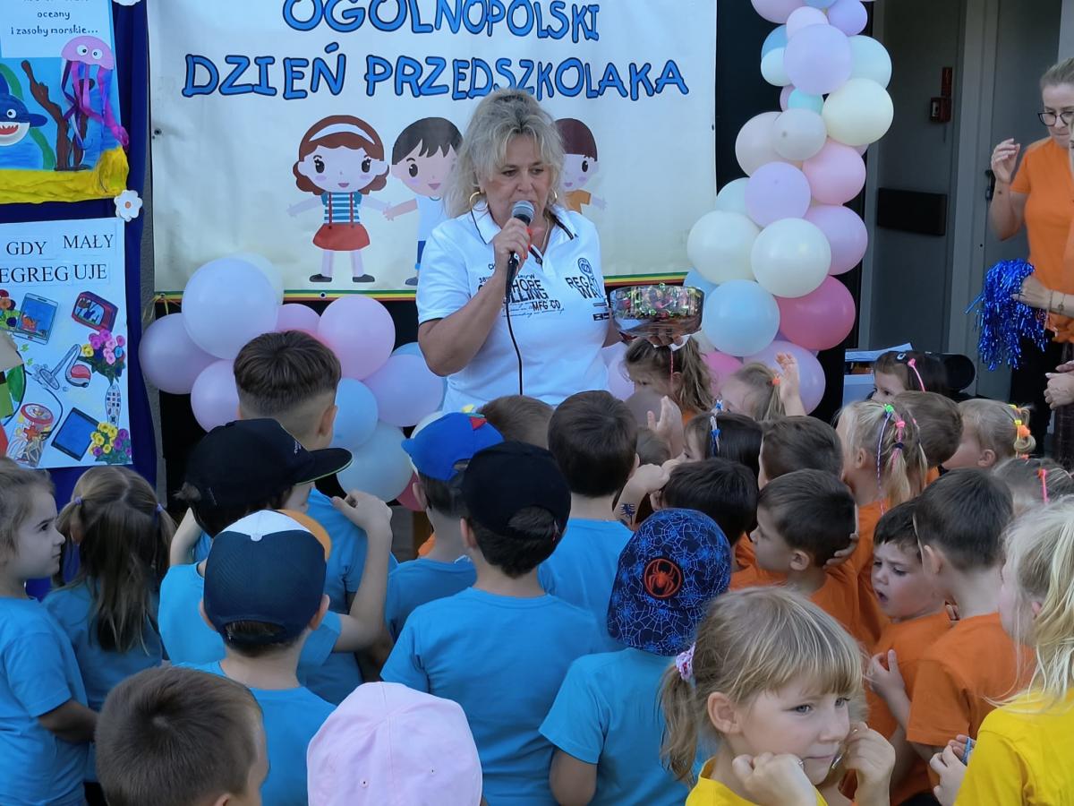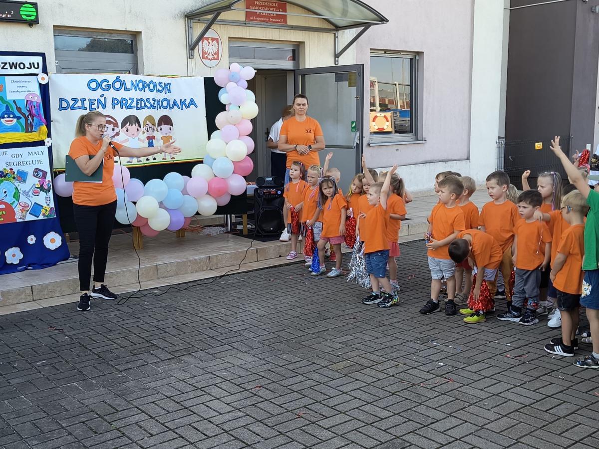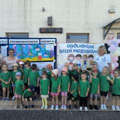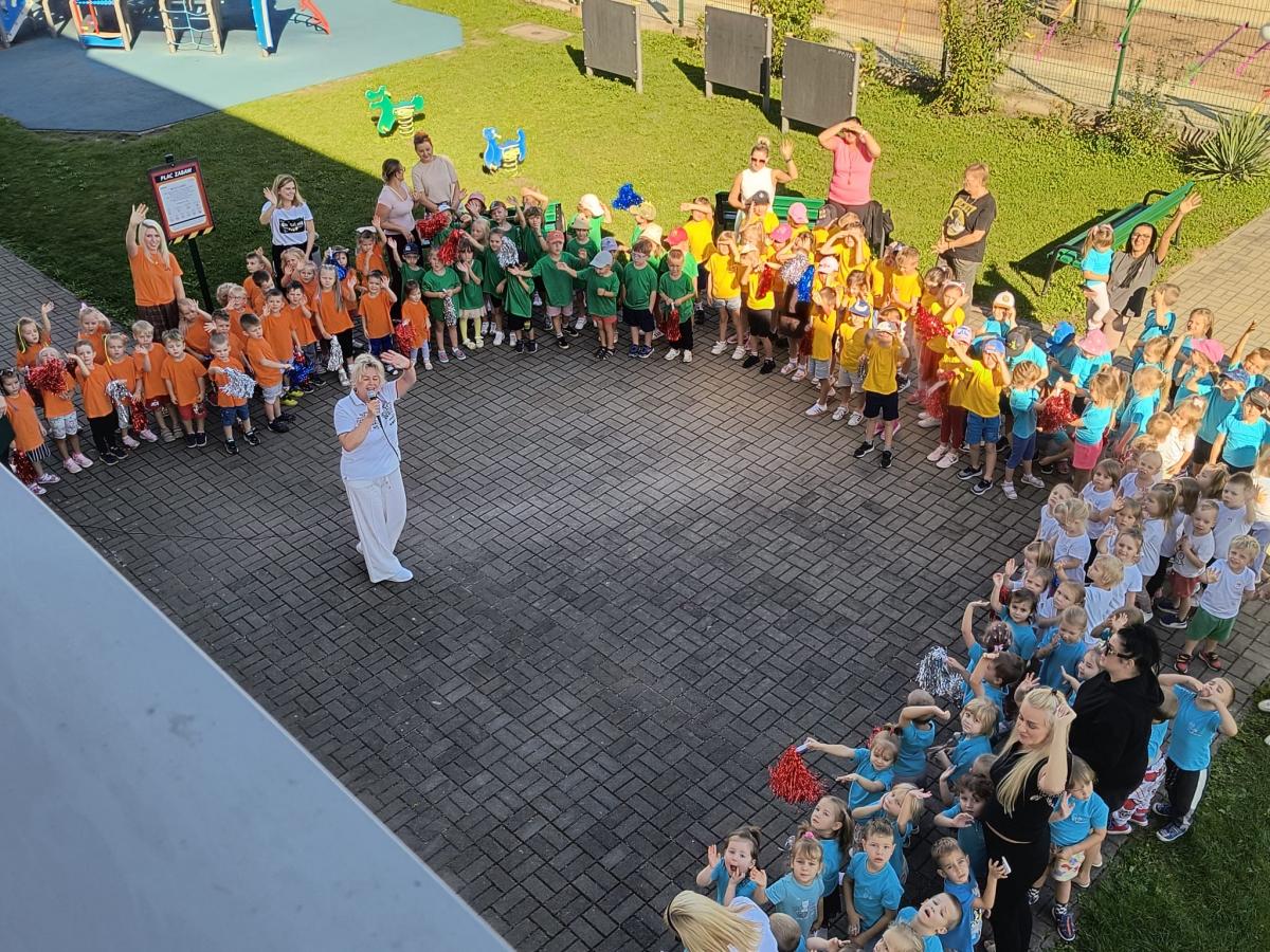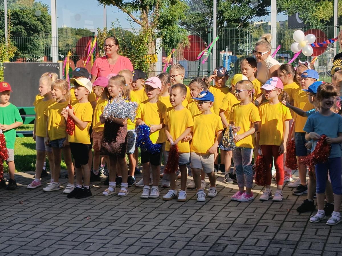 W dniu 20 września w naszym przedszkolu z radością obchodziliśmy Ogólnopolski Dzień Przedszkolaka. Był to wyjątkowy dzień pełen uśmiechów, zabawy i niezapomnianych wrażeń. Obchody rozpoczęliśmy od powitania wszystkich Przedszkolaków przez Panią Dyrektor Halinę Bętkowską. Następnie wszystkie grupy odśpiewały hymn przedszkolaka i piosenkę "Przedszkole drugi dom". Uroczystość była doskonałą okazją do realizacji zadań z ogólnopolskiego projektu "Edukacja dla zrównoważonego rozwoju. Kompetencje społeczne i ekologiczne przedszkolaków" OMEP dotyczącego celów zrównoważonego rozwoju. Dzieci rozwiązywały quiz wiedzy na temat dbania o środowisko naturalne, jak również to w którym żyjemy. Nie zabrakło również aktywności fizycznej na powietrzu w postaci gier i zabaw ruchowych z wykorzystaniem sprzętu sportowego, gumy sensorycznej, czy chusty animacyjnej. Każda grupa wzięła udział w specjalnie przygotowanych konkurencjach, które dostarczyły mnóstwa radości i pozytywnych emocji. Dzień Przedszkolaka był doskonałą okazją do wspólnego świętowania, rozwijania relacji oraz budowania poczucia przynależności do przedszkolnej społeczności. Wszystkim dzieciom życzymy, aby każdy dzień w przedszkolu był tak radosny, jak ten wyjątkowy wrześniowy dzień!