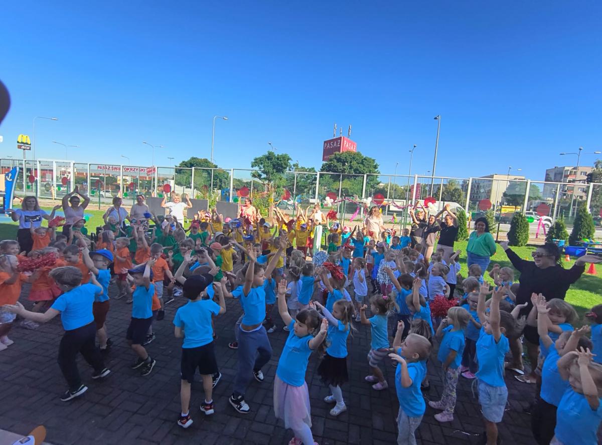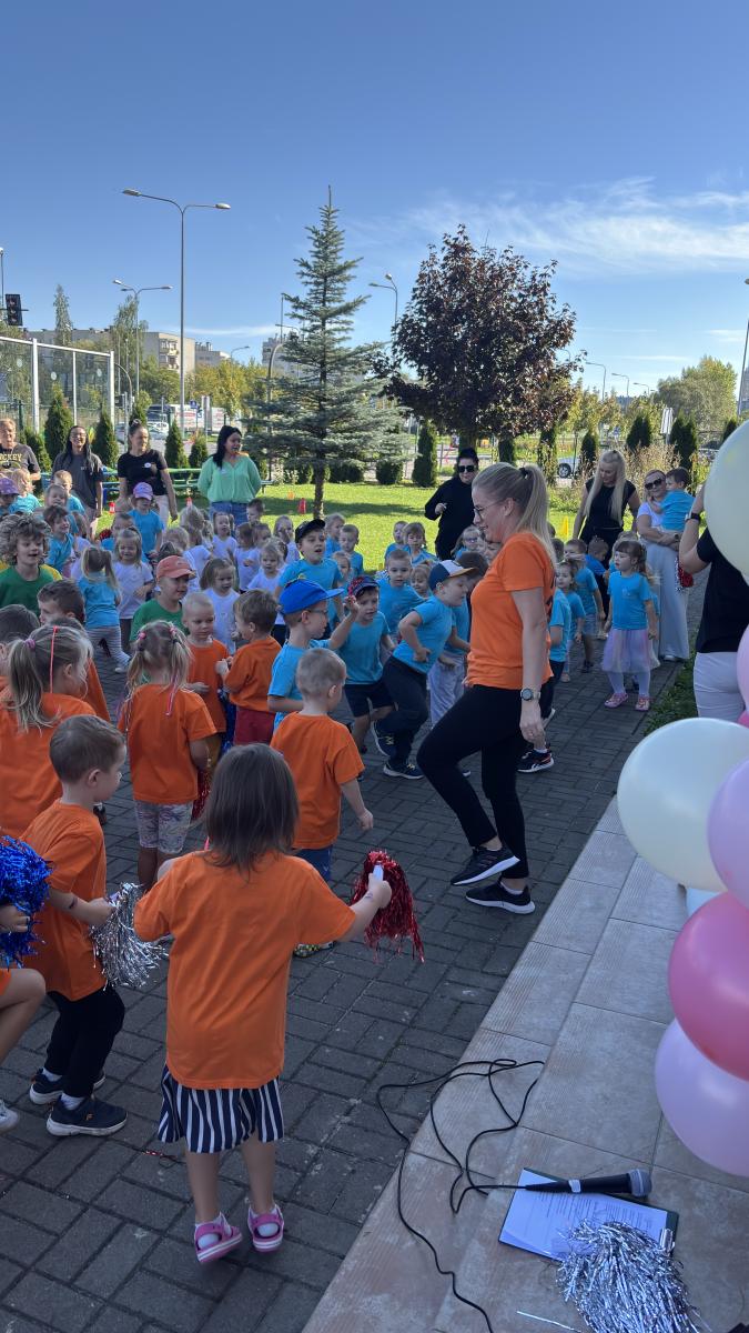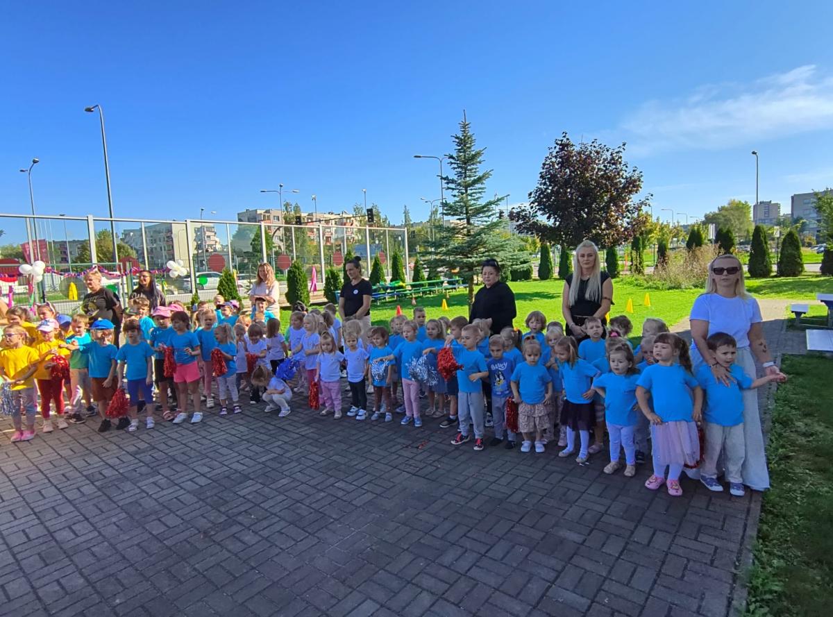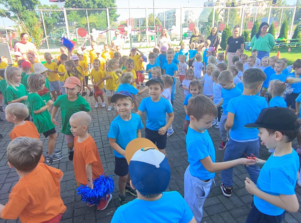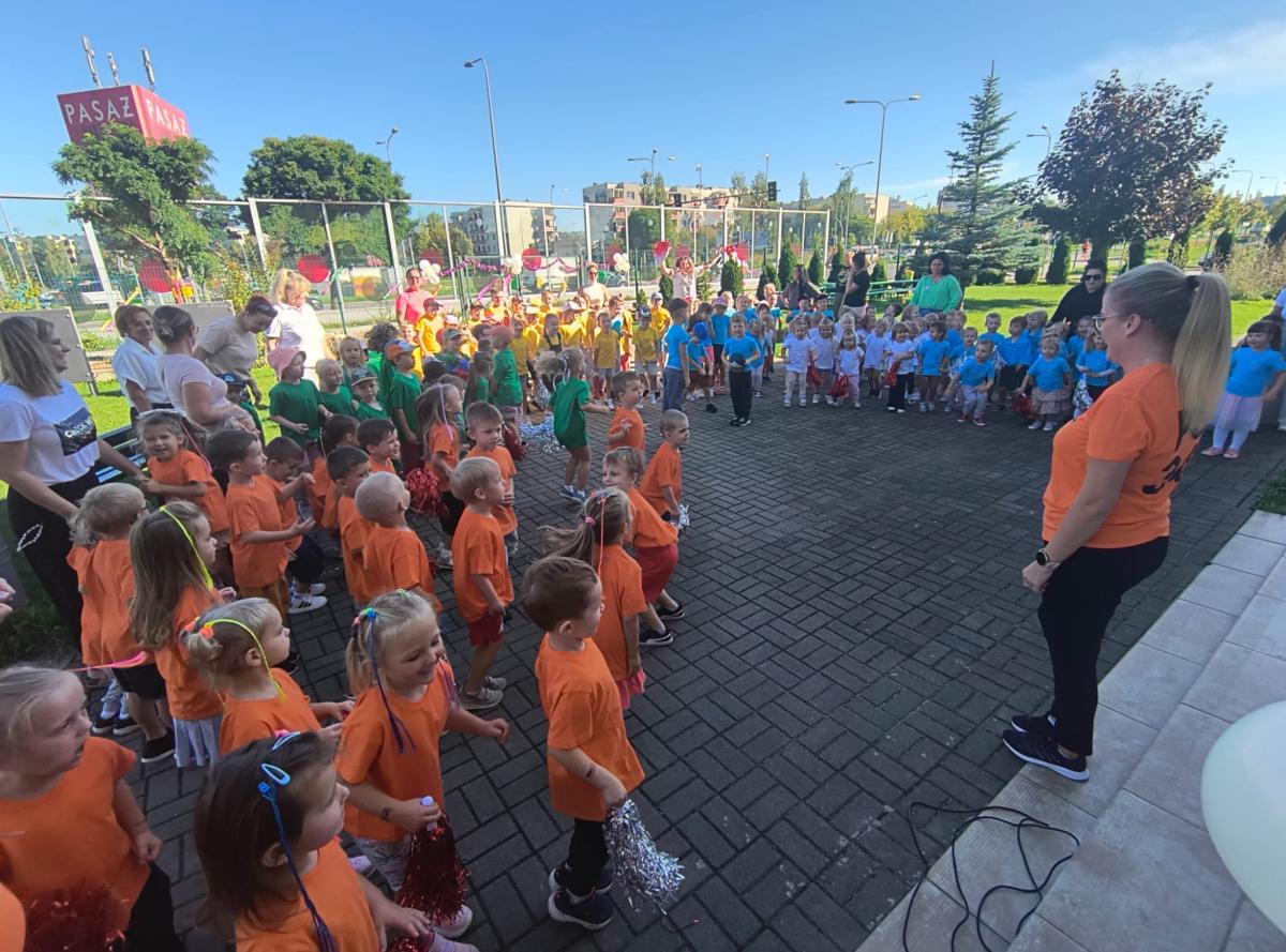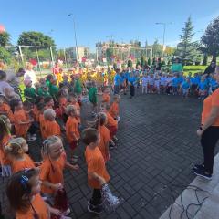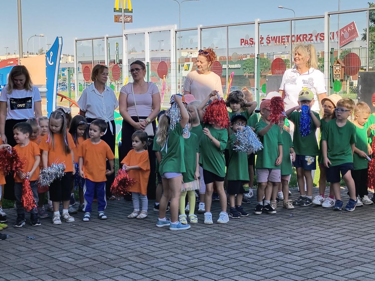 W dniu 20 września w naszym przedszkolu z radością obchodziliśmy Ogólnopolski Dzień Przedszkolaka. Był to wyjątkowy dzień pełen uśmiechów, zabawy i niezapomnianych wrażeń. Obchody rozpoczęliśmy od powitania wszystkich Przedszkolaków przez Panią Dyrektor Halinę Bętkowską. Następnie wszystkie grupy odśpiewały hymn przedszkolaka i piosenkę "Przedszkole drugi dom". Uroczystość była doskonałą okazją do realizacji zadań z ogólnopolskiego projektu "Edukacja dla zrównoważonego rozwoju. Kompetencje społeczne i ekologiczne przedszkolaków" OMEP dotyczącego celów zrównoważonego rozwoju. Dzieci rozwiązywały quiz wiedzy na temat dbania o środowisko naturalne, jak również to w którym żyjemy. Nie zabrakło również aktywności fizycznej na powietrzu w postaci gier i zabaw ruchowych z wykorzystaniem sprzętu sportowego, gumy sensorycznej, czy chusty animacyjnej. Każda grupa wzięła udział w specjalnie przygotowanych konkurencjach, które dostarczyły mnóstwa radości i pozytywnych emocji. Dzień Przedszkolaka był doskonałą okazją do wspólnego świętowania, rozwijania relacji oraz budowania poczucia przynależności do przedszkolnej społeczności. Wszystkim dzieciom życzymy, aby każdy dzień w przedszkolu był tak radosny, jak ten wyjątkowy wrześniowy dzień!