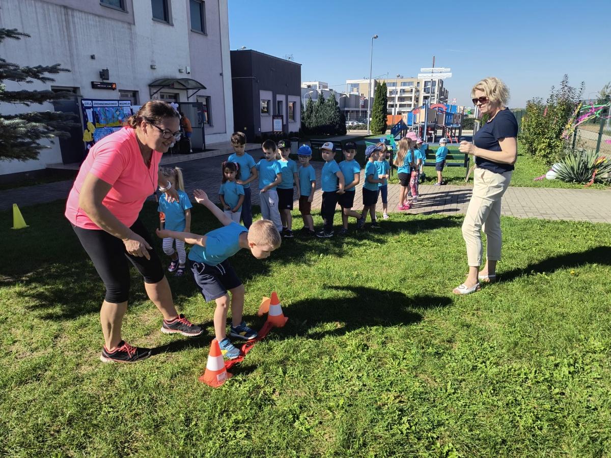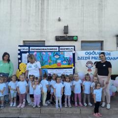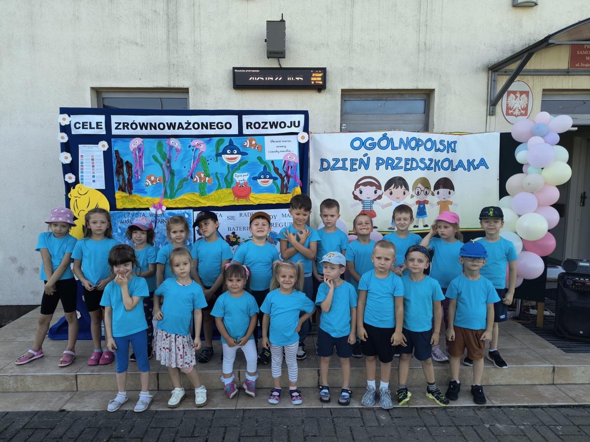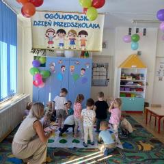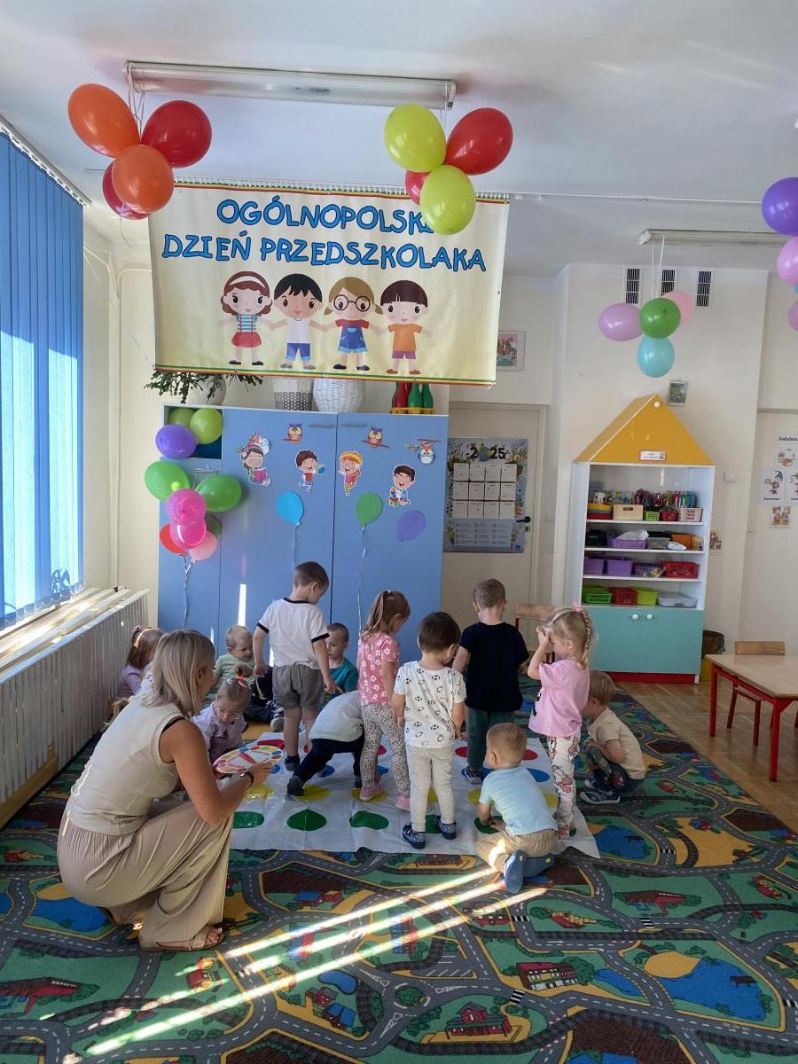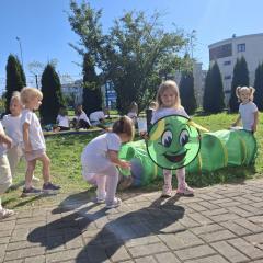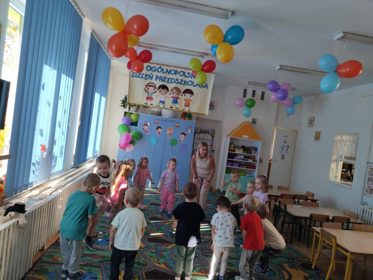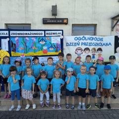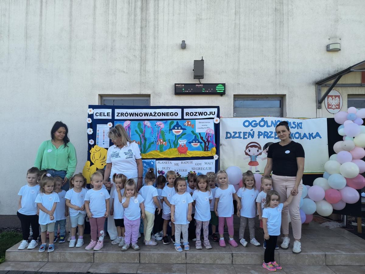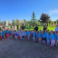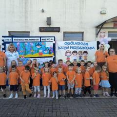 W dniu 20 września w naszym przedszkolu z radością obchodziliśmy Ogólnopolski Dzień Przedszkolaka. Był to wyjątkowy dzień pełen uśmiechów, zabawy i niezapomnianych wrażeń. Obchody rozpoczęliśmy od powitania wszystkich Przedszkolaków przez Panią Dyrektor Halinę Bętkowską. Następnie wszystkie grupy odśpiewały hymn przedszkolaka i piosenkę "Przedszkole drugi dom". Uroczystość była doskonałą okazją do realizacji zadań z ogólnopolskiego projektu "Edukacja dla zrównoważonego rozwoju. Kompetencje społeczne i ekologiczne przedszkolaków" OMEP dotyczącego celów zrównoważonego rozwoju. Dzieci rozwiązywały quiz wiedzy na temat dbania o środowisko naturalne, jak również to w którym żyjemy. Nie zabrakło również aktywności fizycznej na powietrzu w postaci gier i zabaw ruchowych z wykorzystaniem sprzętu sportowego, gumy sensorycznej, czy chusty animacyjnej. Każda grupa wzięła udział w specjalnie przygotowanych konkurencjach, które dostarczyły mnóstwa radości i pozytywnych emocji. Dzień Przedszkolaka był doskonałą okazją do wspólnego świętowania, rozwijania relacji oraz budowania poczucia przynależności do przedszkolnej społeczności. Wszystkim dzieciom życzymy, aby każdy dzień w przedszkolu był tak radosny, jak ten wyjątkowy wrześniowy dzień!