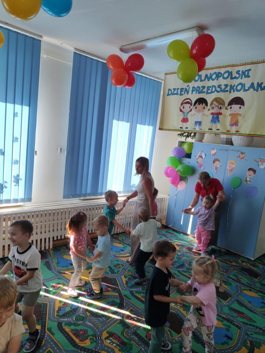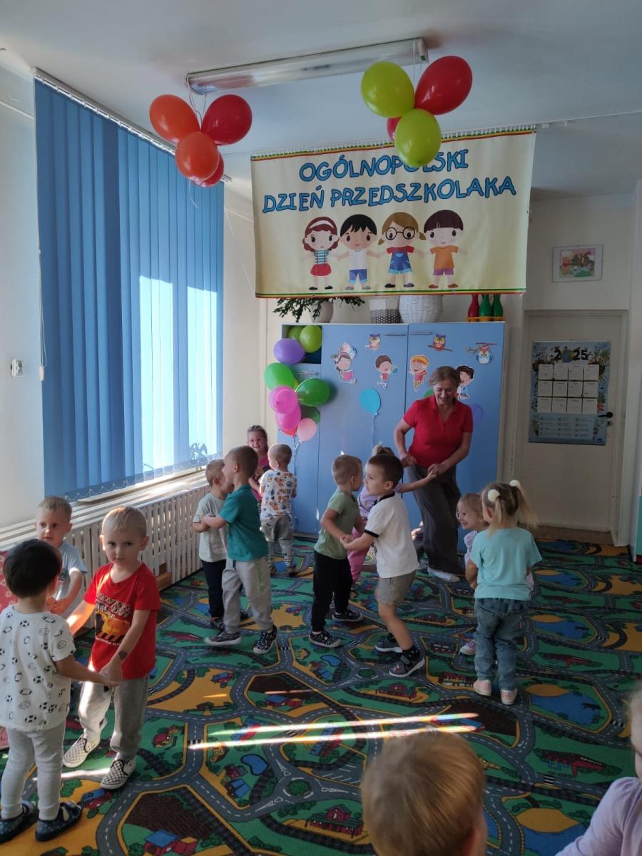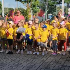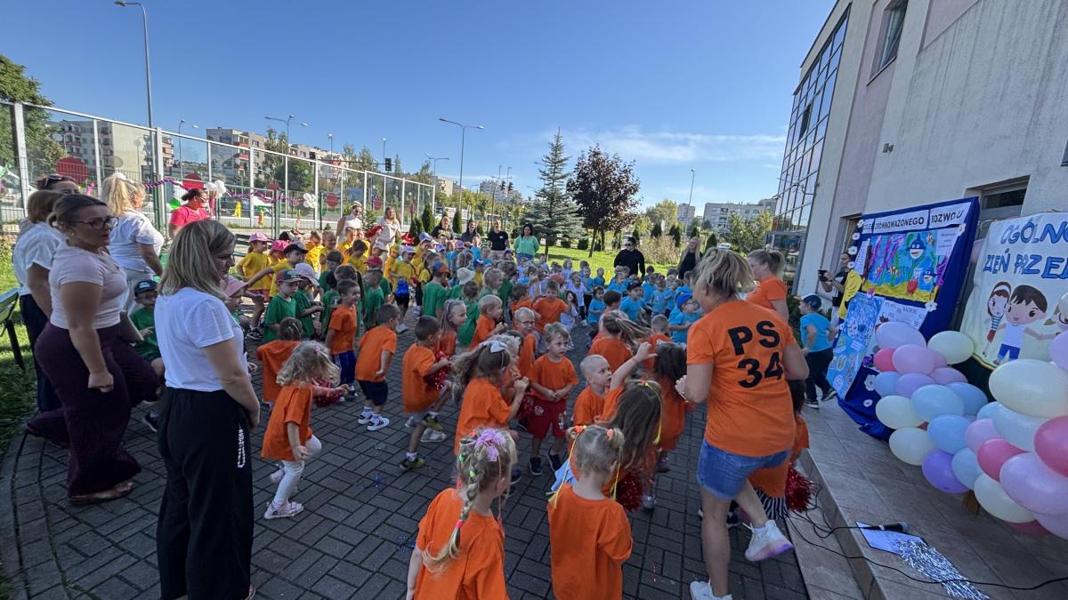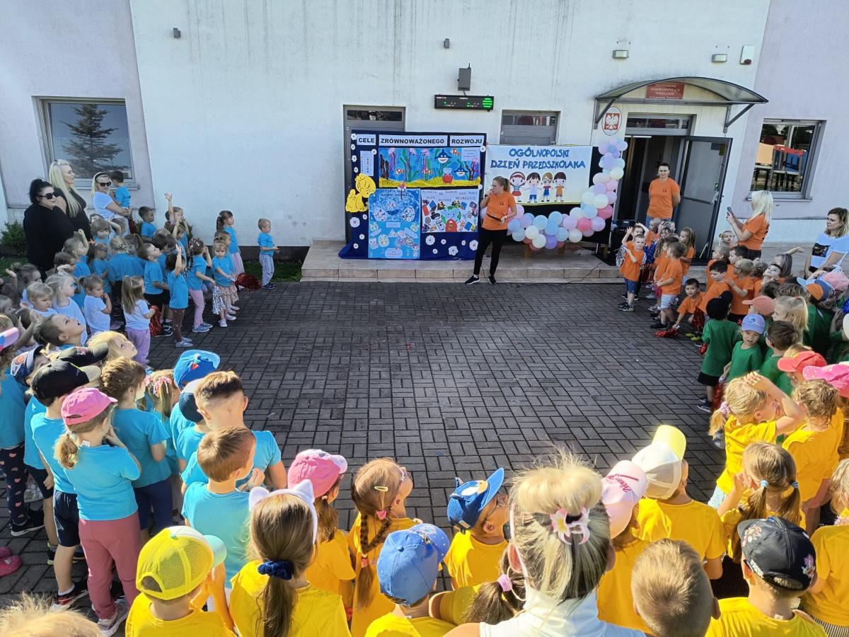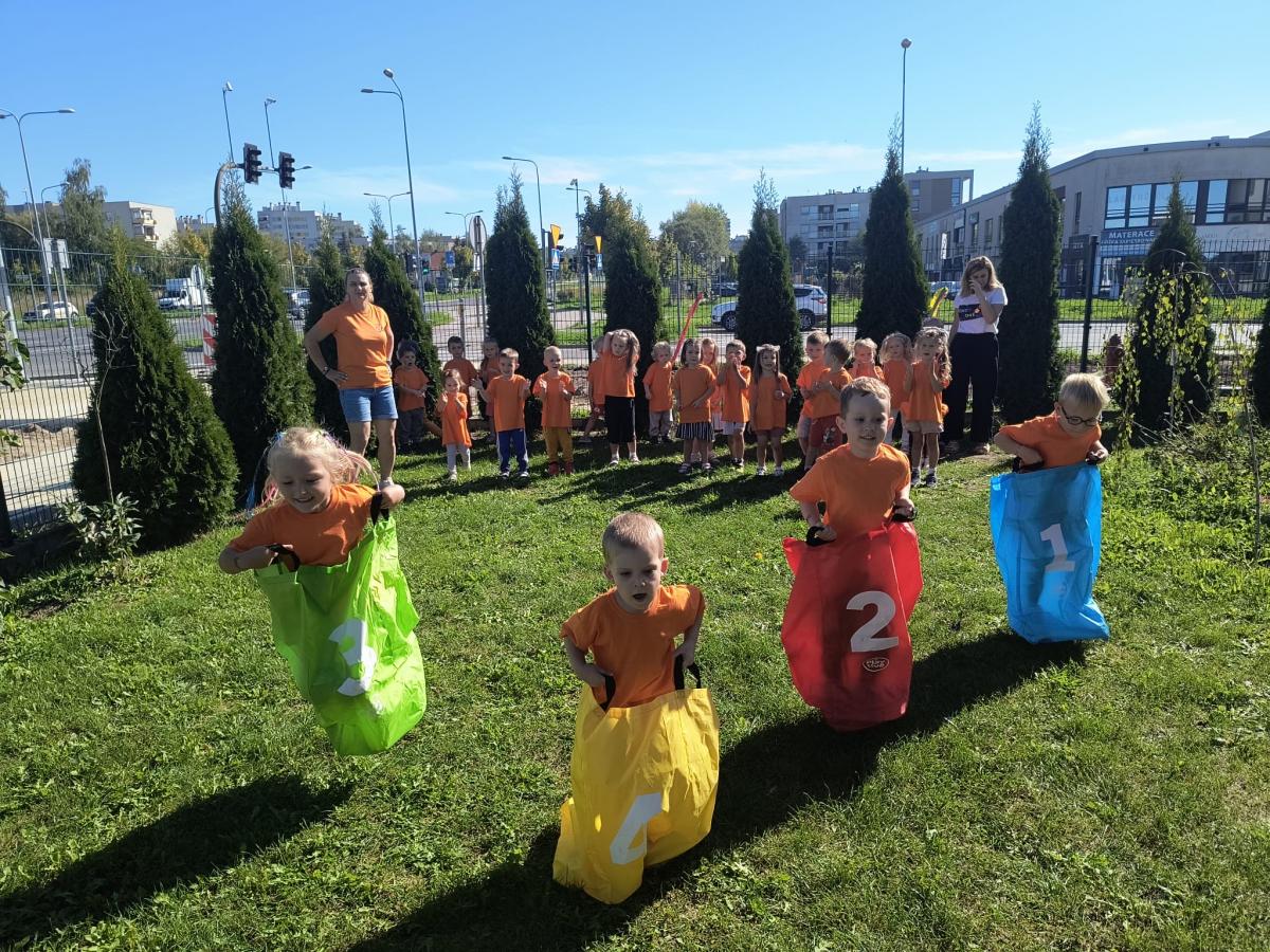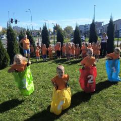 W dniu 20 września w naszym przedszkolu z radością obchodziliśmy Ogólnopolski Dzień Przedszkolaka. Był to wyjątkowy dzień pełen uśmiechów, zabawy i niezapomnianych wrażeń. Obchody rozpoczęliśmy od powitania wszystkich Przedszkolaków przez Panią Dyrektor Halinę Bętkowską. Następnie wszystkie grupy odśpiewały hymn przedszkolaka i piosenkę "Przedszkole drugi dom". Uroczystość była doskonałą okazją do realizacji zadań z ogólnopolskiego projektu "Edukacja dla zrównoważonego rozwoju. Kompetencje społeczne i ekologiczne przedszkolaków" OMEP dotyczącego celów zrównoważonego rozwoju. Dzieci rozwiązywały quiz wiedzy na temat dbania o środowisko naturalne, jak również to w którym żyjemy. Nie zabrakło również aktywności fizycznej na powietrzu w postaci gier i zabaw ruchowych z wykorzystaniem sprzętu sportowego, gumy sensorycznej, czy chusty animacyjnej. Każda grupa wzięła udział w specjalnie przygotowanych konkurencjach, które dostarczyły mnóstwa radości i pozytywnych emocji. Dzień Przedszkolaka był doskonałą okazją do wspólnego świętowania, rozwijania relacji oraz budowania poczucia przynależności do przedszkolnej społeczności. Wszystkim dzieciom życzymy, aby każdy dzień w przedszkolu był tak radosny, jak ten wyjątkowy wrześniowy dzień!
