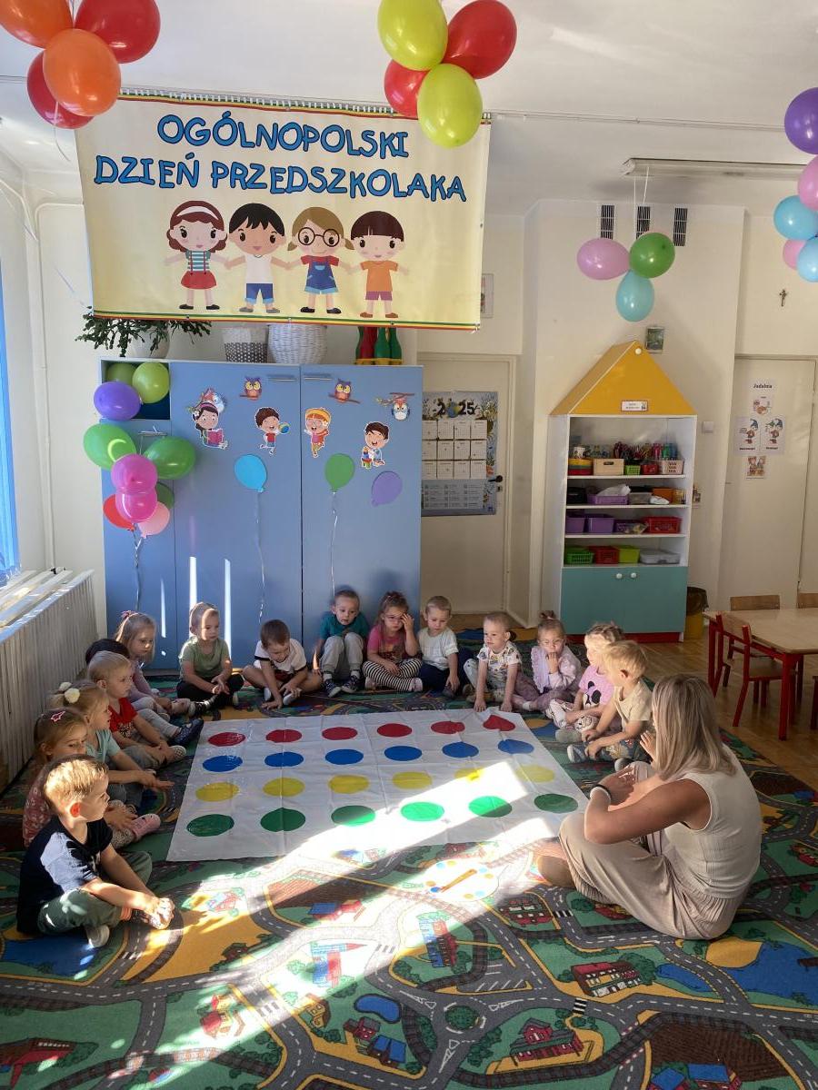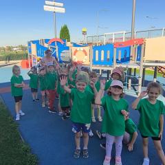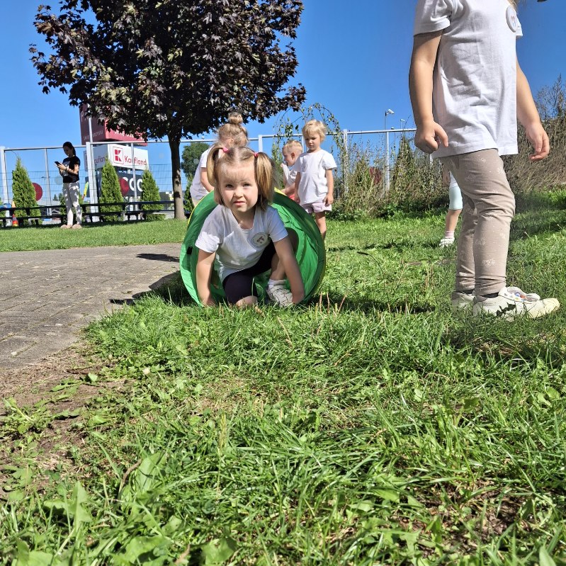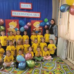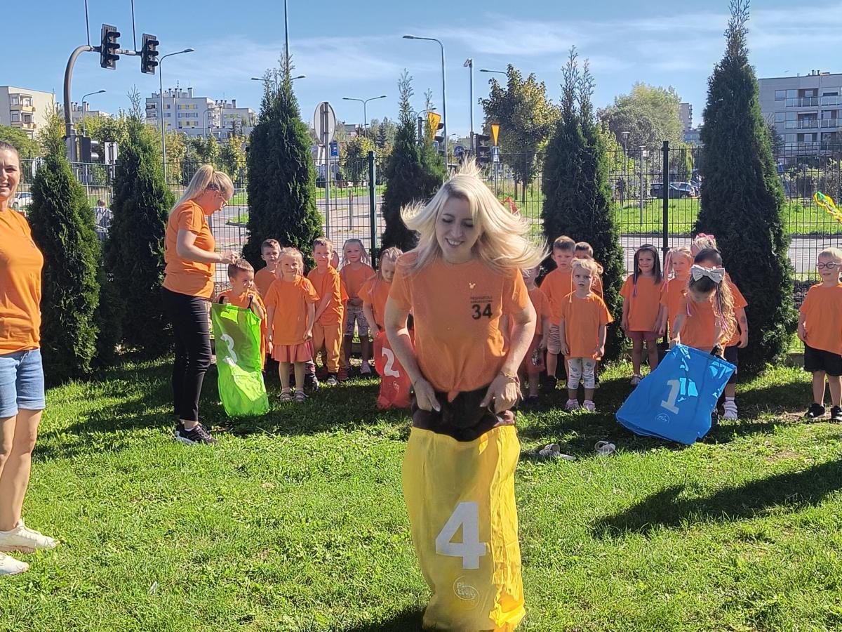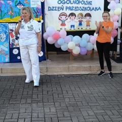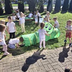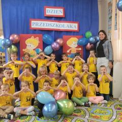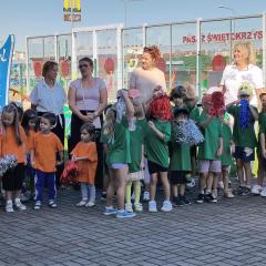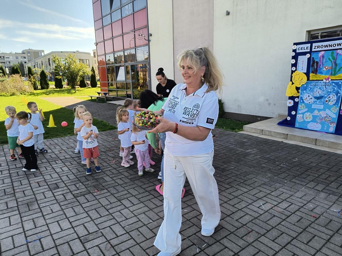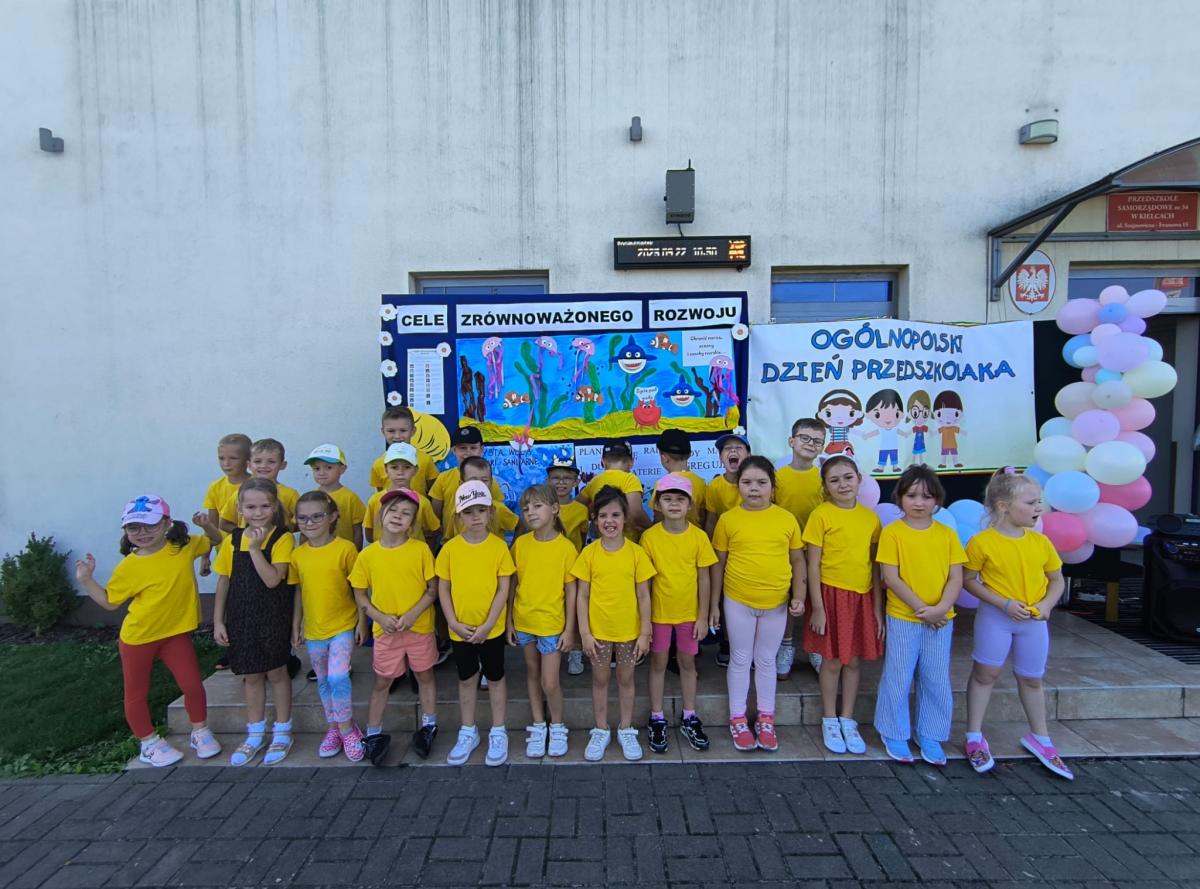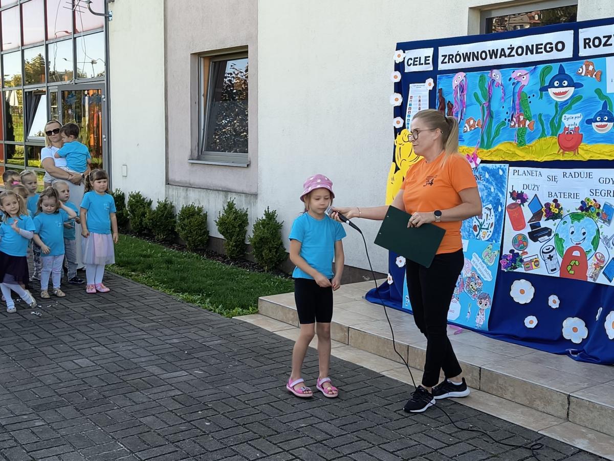 W dniu 20 września w naszym przedszkolu z radością obchodziliśmy Ogólnopolski Dzień Przedszkolaka. Był to wyjątkowy dzień pełen uśmiechów, zabawy i niezapomnianych wrażeń. Obchody rozpoczęliśmy od powitania wszystkich Przedszkolaków przez Panią Dyrektor Halinę Bętkowską. Następnie wszystkie grupy odśpiewały hymn przedszkolaka i piosenkę "Przedszkole drugi dom". Uroczystość była doskonałą okazją do realizacji zadań z ogólnopolskiego projektu "Edukacja dla zrównoważonego rozwoju. Kompetencje społeczne i ekologiczne przedszkolaków" OMEP dotyczącego celów zrównoważonego rozwoju. Dzieci rozwiązywały quiz wiedzy na temat dbania o środowisko naturalne, jak również to w którym żyjemy. Nie zabrakło również aktywności fizycznej na powietrzu w postaci gier i zabaw ruchowych z wykorzystaniem sprzętu sportowego, gumy sensorycznej, czy chusty animacyjnej. Każda grupa wzięła udział w specjalnie przygotowanych konkurencjach, które dostarczyły mnóstwa radości i pozytywnych emocji. Dzień Przedszkolaka był doskonałą okazją do wspólnego świętowania, rozwijania relacji oraz budowania poczucia przynależności do przedszkolnej społeczności. Wszystkim dzieciom życzymy, aby każdy dzień w przedszkolu był tak radosny, jak ten wyjątkowy wrześniowy dzień!