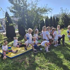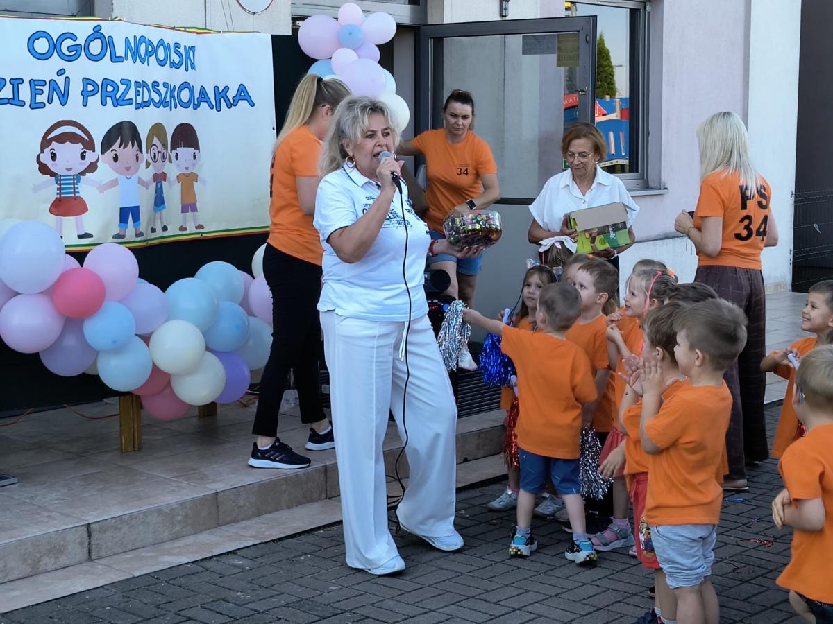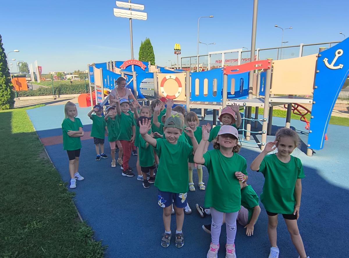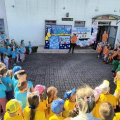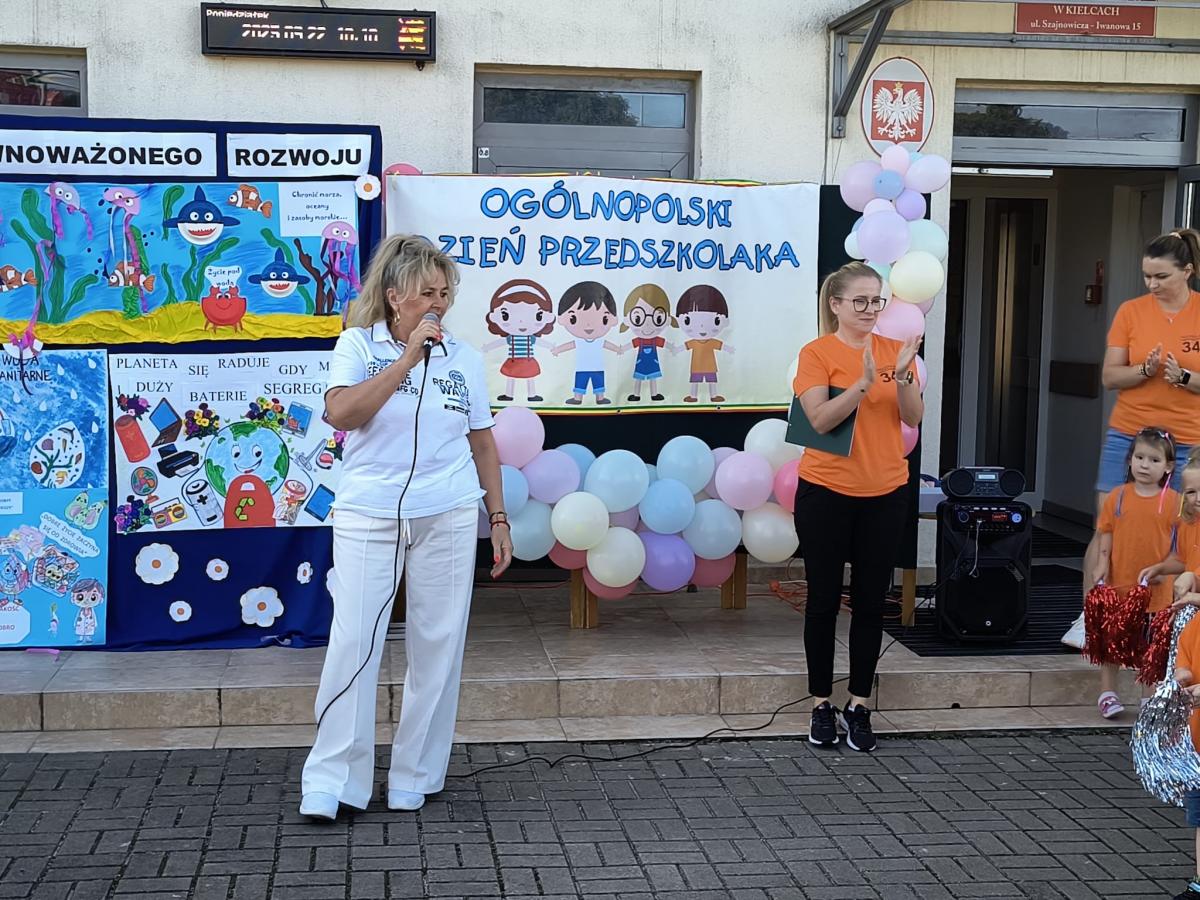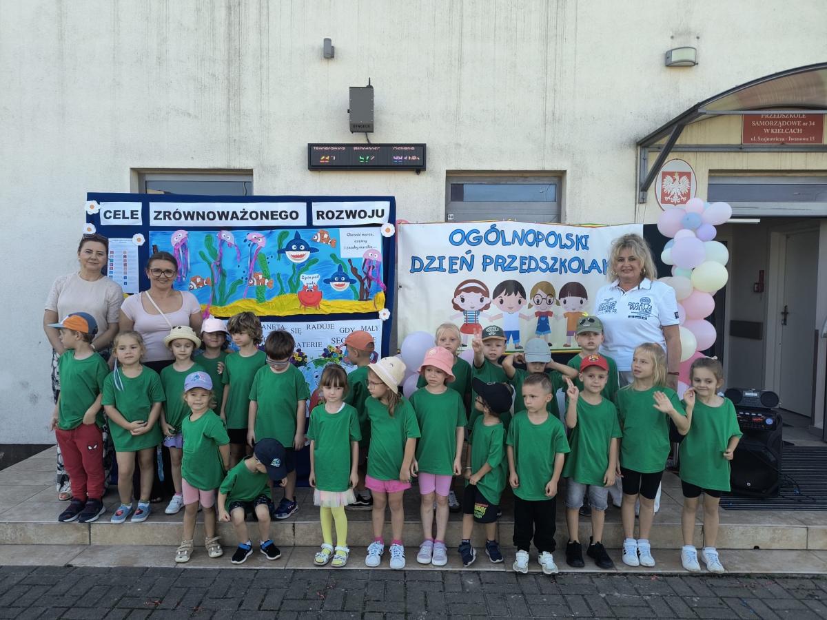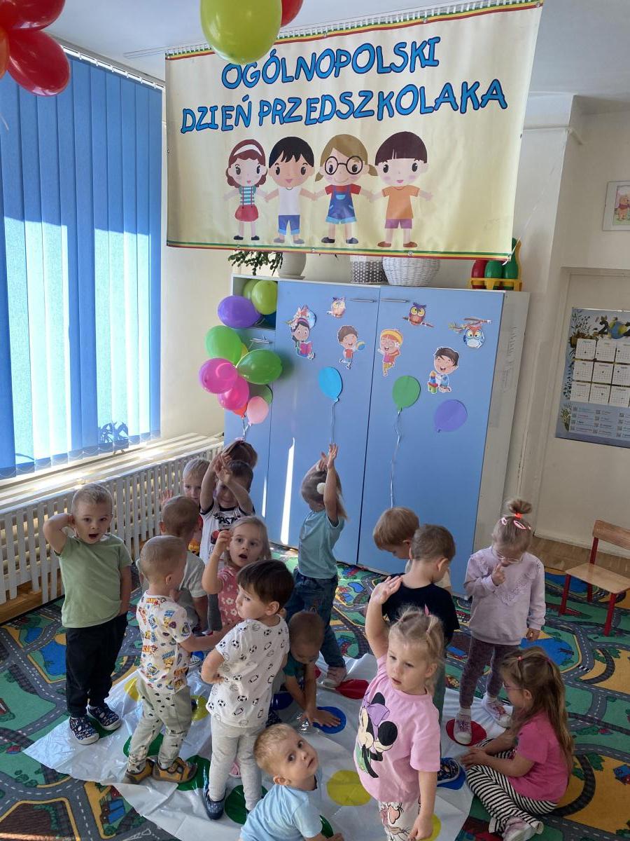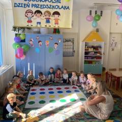 W dniu 20 września w naszym przedszkolu z radością obchodziliśmy Ogólnopolski Dzień Przedszkolaka. Był to wyjątkowy dzień pełen uśmiechów, zabawy i niezapomnianych wrażeń. Obchody rozpoczęliśmy od powitania wszystkich Przedszkolaków przez Panią Dyrektor Halinę Bętkowską. Następnie wszystkie grupy odśpiewały hymn przedszkolaka i piosenkę "Przedszkole drugi dom". Uroczystość była doskonałą okazją do realizacji zadań z ogólnopolskiego projektu "Edukacja dla zrównoważonego rozwoju. Kompetencje społeczne i ekologiczne przedszkolaków" OMEP dotyczącego celów zrównoważonego rozwoju. Dzieci rozwiązywały quiz wiedzy na temat dbania o środowisko naturalne, jak również to w którym żyjemy. Nie zabrakło również aktywności fizycznej na powietrzu w postaci gier i zabaw ruchowych z wykorzystaniem sprzętu sportowego, gumy sensorycznej, czy chusty animacyjnej. Każda grupa wzięła udział w specjalnie przygotowanych konkurencjach, które dostarczyły mnóstwa radości i pozytywnych emocji. Dzień Przedszkolaka był doskonałą okazją do wspólnego świętowania, rozwijania relacji oraz budowania poczucia przynależności do przedszkolnej społeczności. Wszystkim dzieciom życzymy, aby każdy dzień w przedszkolu był tak radosny, jak ten wyjątkowy wrześniowy dzień!