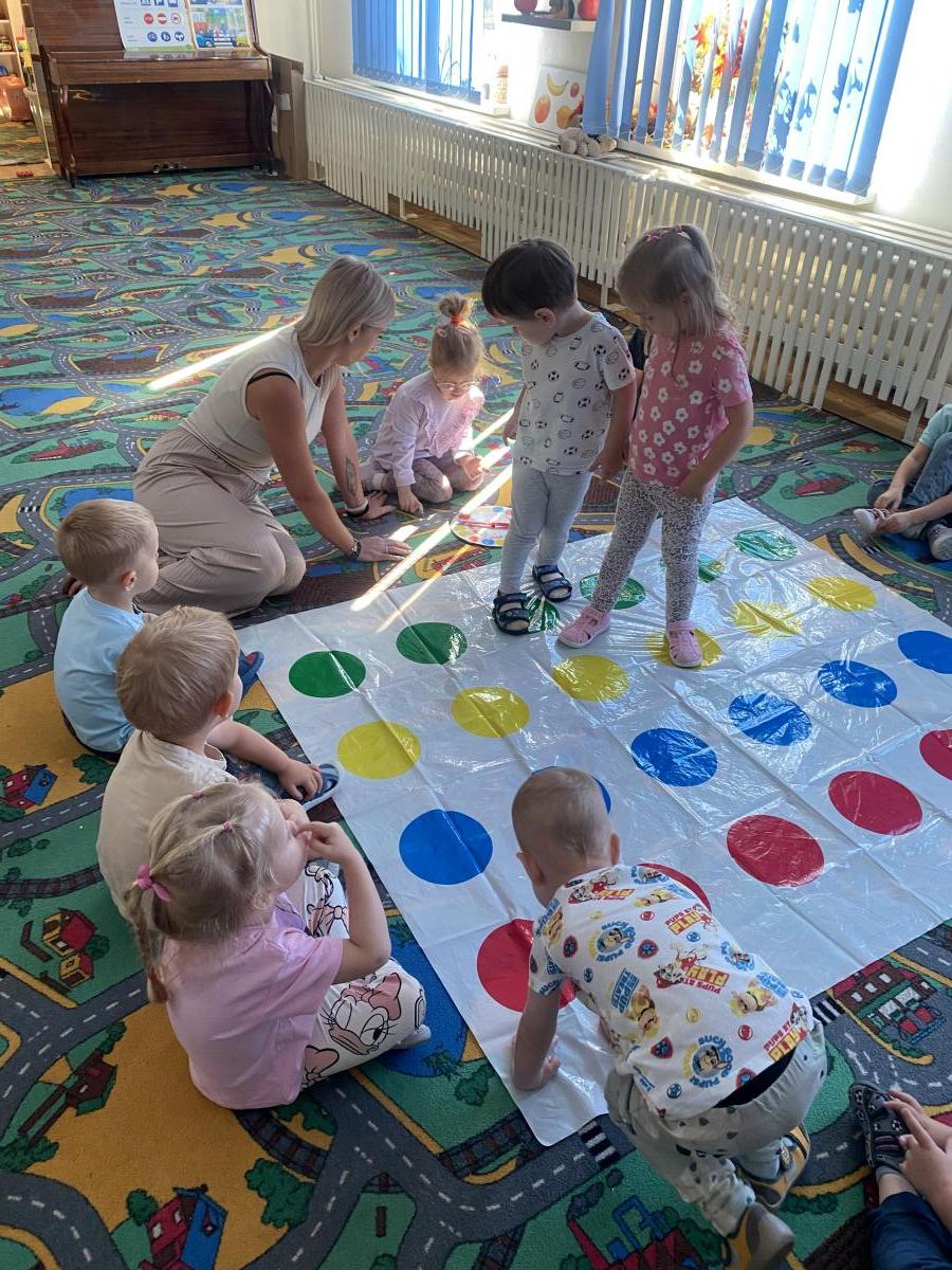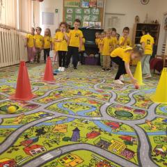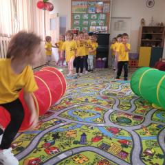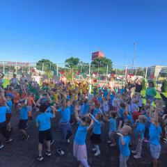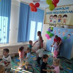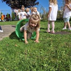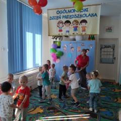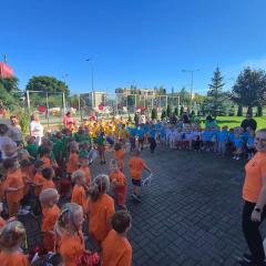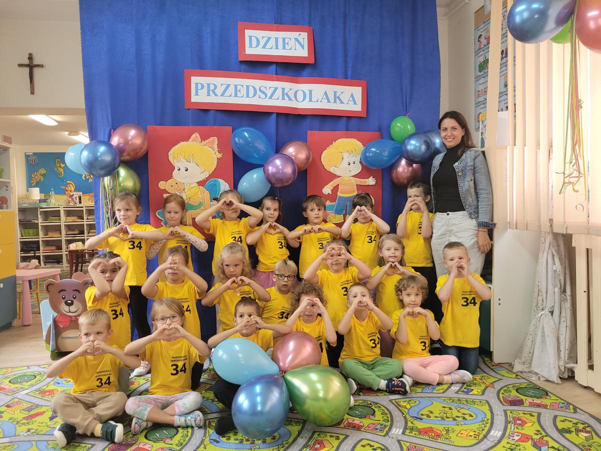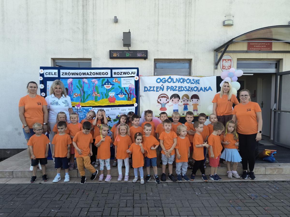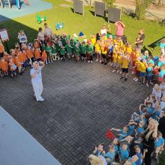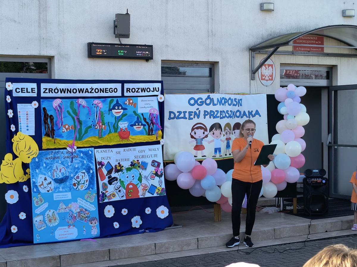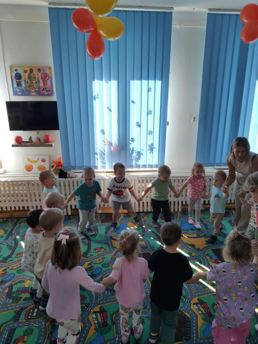 W dniu 20 września w naszym przedszkolu z radością obchodziliśmy Ogólnopolski Dzień Przedszkolaka. Był to wyjątkowy dzień pełen uśmiechów, zabawy i niezapomnianych wrażeń. Obchody rozpoczęliśmy od powitania wszystkich Przedszkolaków przez Panią Dyrektor Halinę Bętkowską. Następnie wszystkie grupy odśpiewały hymn przedszkolaka i piosenkę "Przedszkole drugi dom". Uroczystość była doskonałą okazją do realizacji zadań z ogólnopolskiego projektu "Edukacja dla zrównoważonego rozwoju. Kompetencje społeczne i ekologiczne przedszkolaków" OMEP dotyczącego celów zrównoważonego rozwoju. Dzieci rozwiązywały quiz wiedzy na temat dbania o środowisko naturalne, jak również to w którym żyjemy. Nie zabrakło również aktywności fizycznej na powietrzu w postaci gier i zabaw ruchowych z wykorzystaniem sprzętu sportowego, gumy sensorycznej, czy chusty animacyjnej. Każda grupa wzięła udział w specjalnie przygotowanych konkurencjach, które dostarczyły mnóstwa radości i pozytywnych emocji. Dzień Przedszkolaka był doskonałą okazją do wspólnego świętowania, rozwijania relacji oraz budowania poczucia przynależności do przedszkolnej społeczności. Wszystkim dzieciom życzymy, aby każdy dzień w przedszkolu był tak radosny, jak ten wyjątkowy wrześniowy dzień!