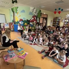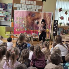 Dziś w naszym przedszkolu odbyło się czytanie książek przez nauczycieli w ramach ogólnopolskiej akcji „Cała Polska czyta dzieciom”. Przedszkolaki wysłuchały wiersza Marii Konopnickiej „Pan Zielonka” i wierszy Jana Brzechwy: „ Kaczka dziwaczka”, „Żuk” i „ Na wyspach Bergamutach”.  Spotkanie przebiegło w miłej i spokojnej atmosferze, sprzyjającej rozwijaniu zainteresowań czytelniczych, wyobraźni oraz kształtowaniu nawyku sięgania po książkę. Na zakończenie wszystkie grupy zaśpiewały piosenkę  „ Książka przyjaciółka”. A najlepiej zintegrowała  dzieci zabawa ruchowa "Maskotki - Uszka, Ramiona".