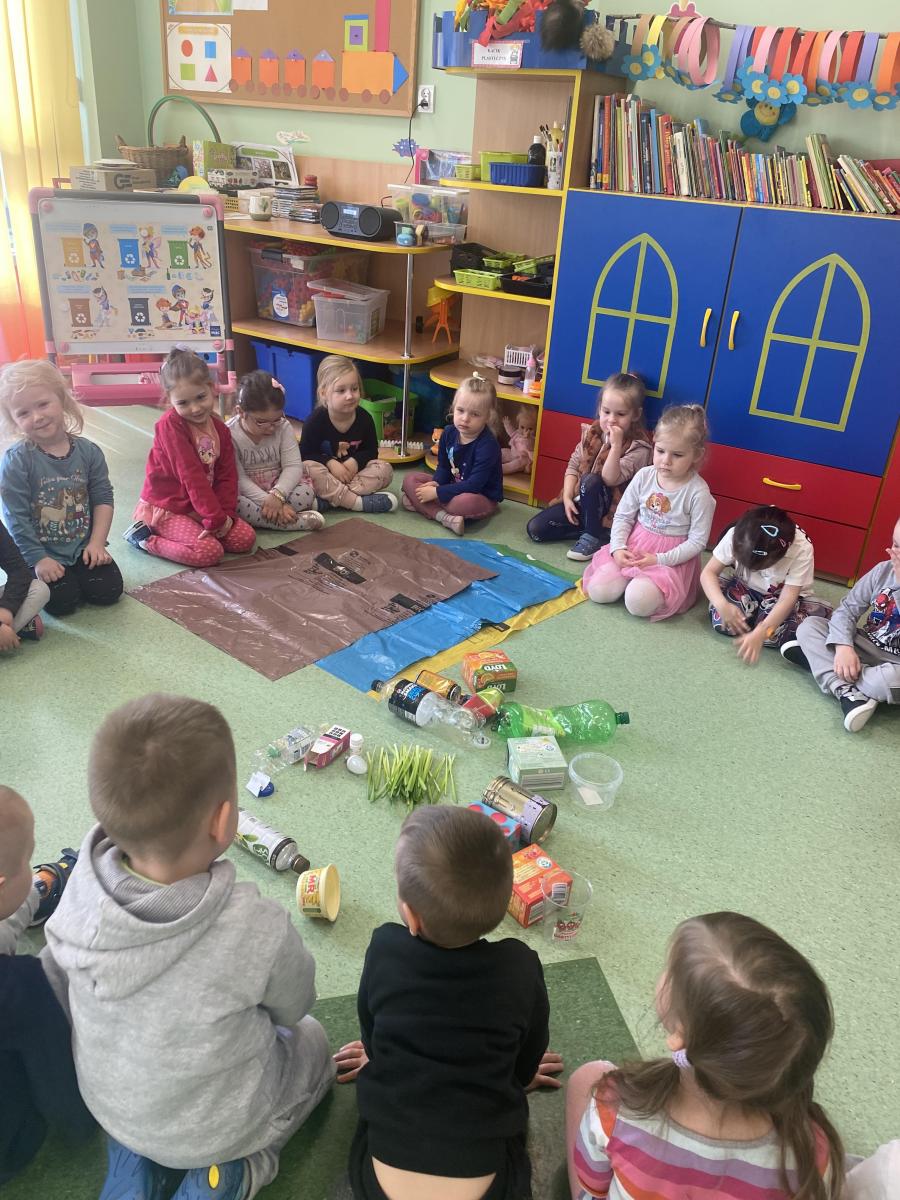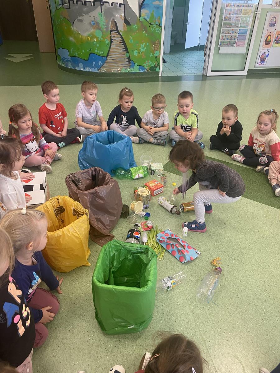 W dniach 17-21 kwietnia przedszkolaki Maluchy 3 i Maluchy 4 uczestniczyły w realizacji projektu "Nauczmy dzieci segregować śmieci". Założeniem projektu było uświadomienie dzieciom znaczenia dbania o środowisko naturalne. Dzieci podczas zajęć zapoznały się z nowymi terminami jak: ekologia, segregacja, odpady, recykling, elektrośmieci. Przedszkolaki uczyły się o tym, jaki sens ma codzienna segregacja śmieci, dlaczego te działania są tak ważne, w jakim celu pojemniki mają różne kolory, co ma się znajdować w każdym z nich i dlaczego. W toku praktycznych działań dzieci segregowały odpady i utrwalały sobie kolory pojemników.