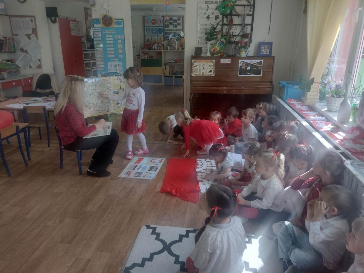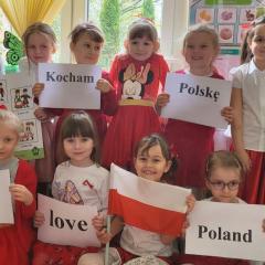 Piątek 28 kwietnia w naszym przedszkolu był dniem poświęconym obchodom upamiętniającym uchwalenie Konstytucji 3 Maja oraz zbliżającego się Święta Flagi. W tym dniu przedszkolaki prezentowały się niezwykle uroczyście - ubrane w biało czerwone barwy. Z tej okazji rozmawialiśmy o patriotyźmie, o znaczeniu ojczyzny w naszym życiu oraz o symbolach narodowych. Dzieci obejrzały również prezentację na temat znaczenia nadchodzących świąt w historii naszej ojczyzny. Na zakończenie dzieci wspólnie odśpiewały hymn Polski oraz wykonały flagi i godła. Dzień ten był dla przedszkolaków wspaniałą lekcją przypomnienia sobie, że są Polakami, a Polska to ich Ojczyzna.