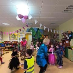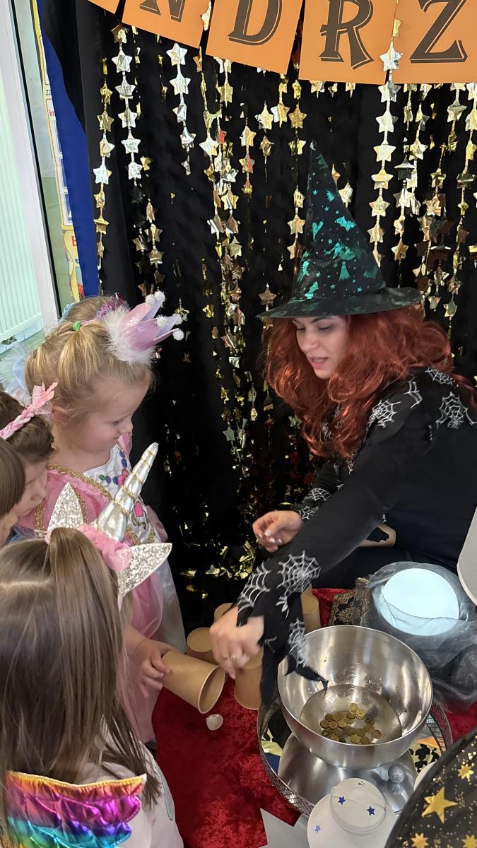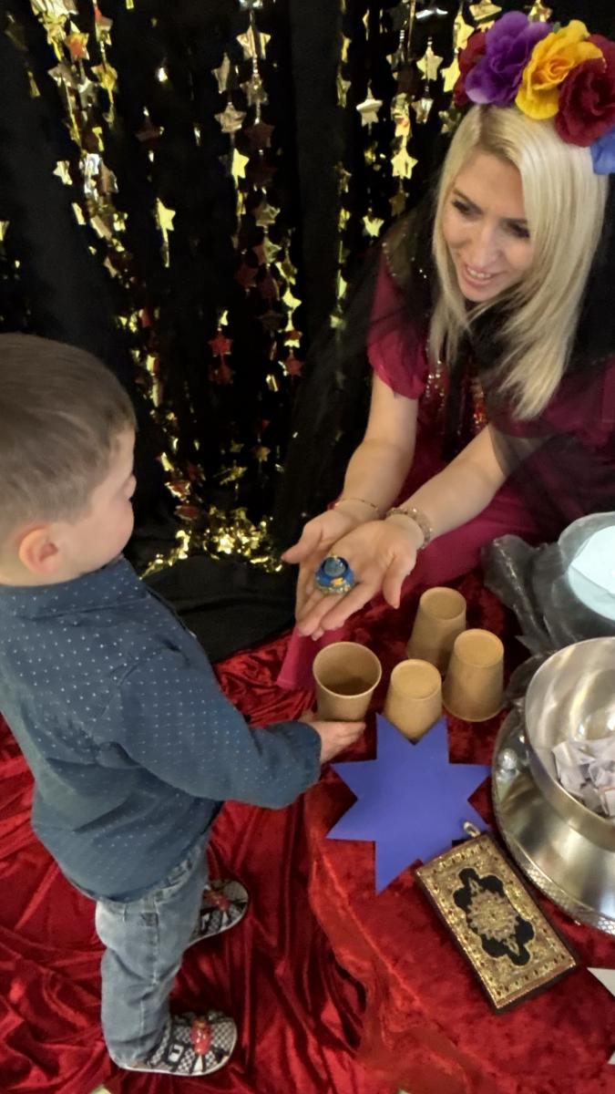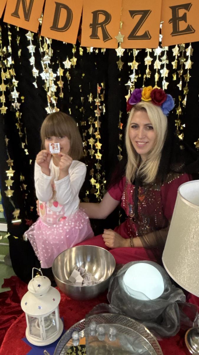 Przedszkolaki losowały symbole przyszłych zawodów, sprawdzały, co przyniesie im przyszłość oraz brały udział w wesołych zabawach ruchowych i tanecznych. Wszystko odbywało się w atmosferze radości, tajemniczości i dobrej zabawy.
