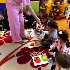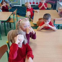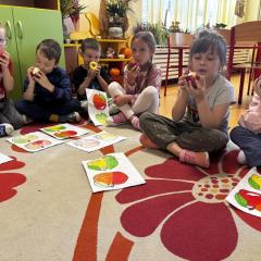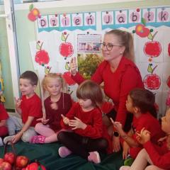 W naszym przedszkolu przedszkolaki świętowały Dzień Jabłka, który był okazją do poznania tego pysznego i zdrowego owocu. Dzieci miały możliwość spróbowania różnych odmian jabłek, uczestniczyły w kreatywnych zajęciach plastycznych związanych z tematem, a także dowiedziały się, dlaczego jabłko jest tak ważne dla naszego zdrowia. Zdobywały wiadomości na temat potraw i przetworów z owoców oraz wspólnie przygotowały pyszny soczek jabłkowy. Były również okazje do wykonania zadań matematycznych typu przeliczanie jabłek, porównywanie wielkości. Dzień Jabłka był pełen radości, nauki i smakowitych doznań. To wydarzenie nie tylko promowało zdrowe odżywianie, ale także rozwijało umiejętności poznawcze i kreatywność naszych przedszkolaków.